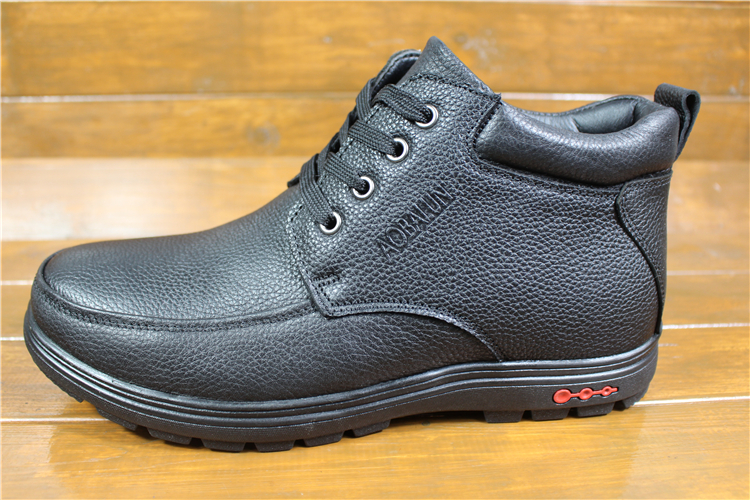 Trendy autumn and winter men's shoes with velvet lychee pattern cowhide business shoes outdoor casual high-top leather shoes round toe Martin boots