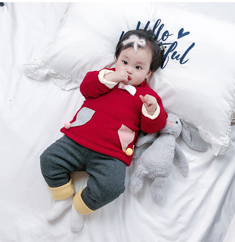 Baby cotton pants plus velvet thick winter outer wear open crotch quilted cotton girls underwear baby pants men's three-layer warm pants