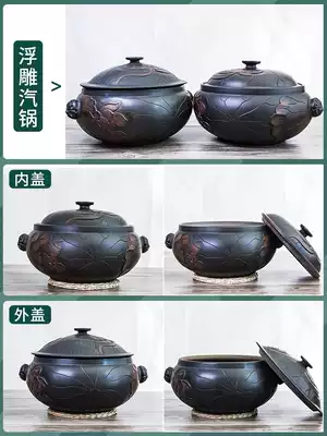 Dianjiang steam pot embossed steam pot Yunnan Jianshui purple clay steam pot Purple sand gas pot Steam pot Chicken steam pot Household