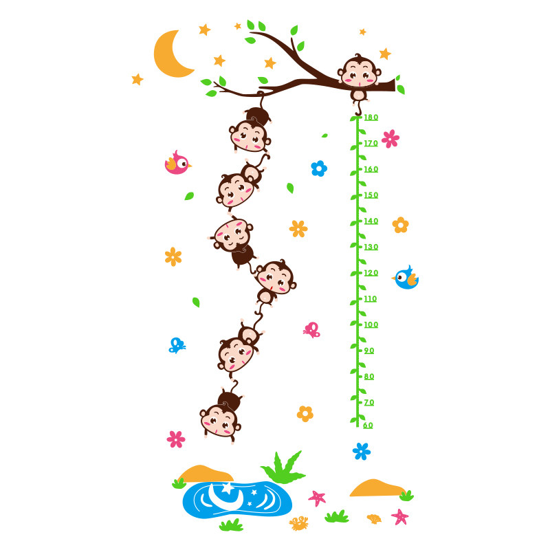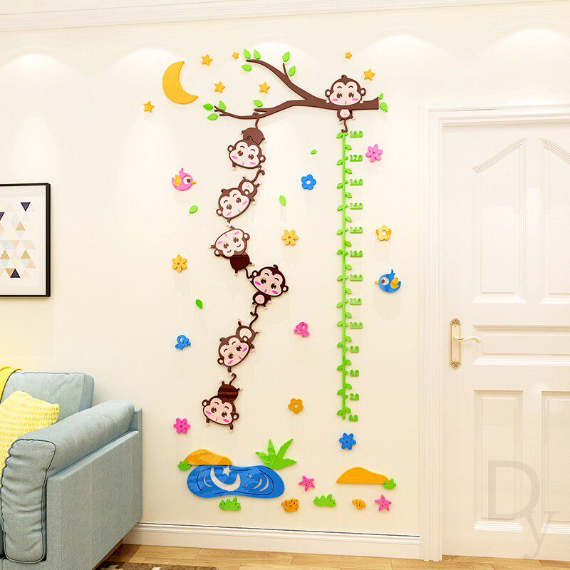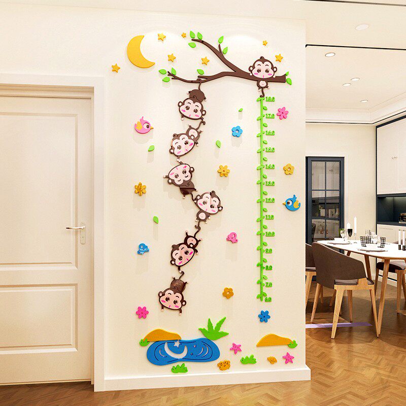 Kindergarten wall decoration stickers children's room bedroom 3d three-dimensional cartoon monkey measuring height ruler wall stickers