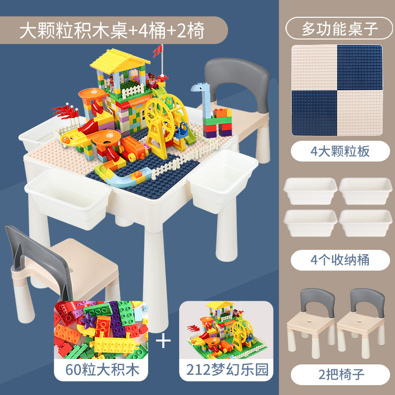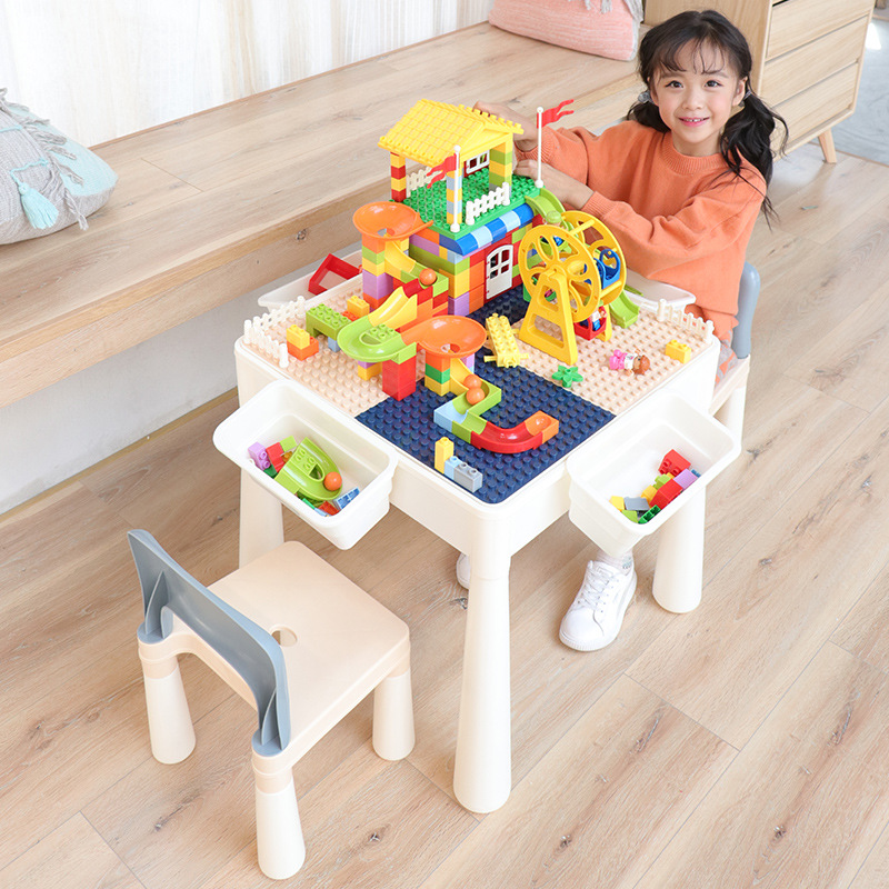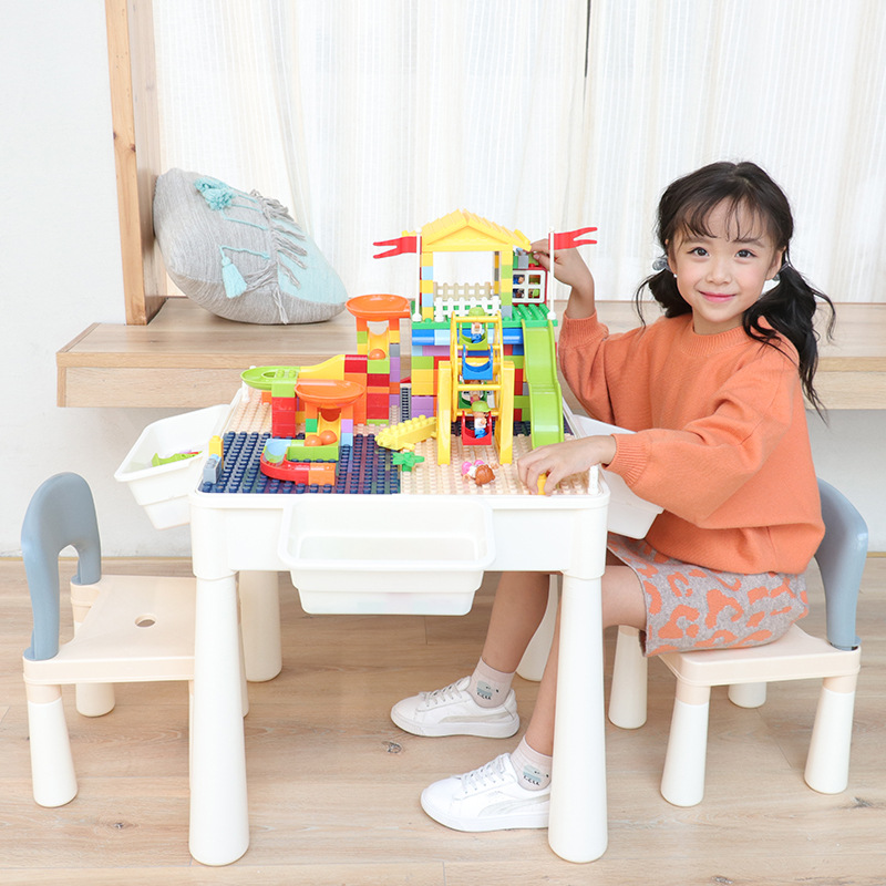 Baby multifunctional building block table and chair combination children's educational games toy building block table and chair set compatible with legao