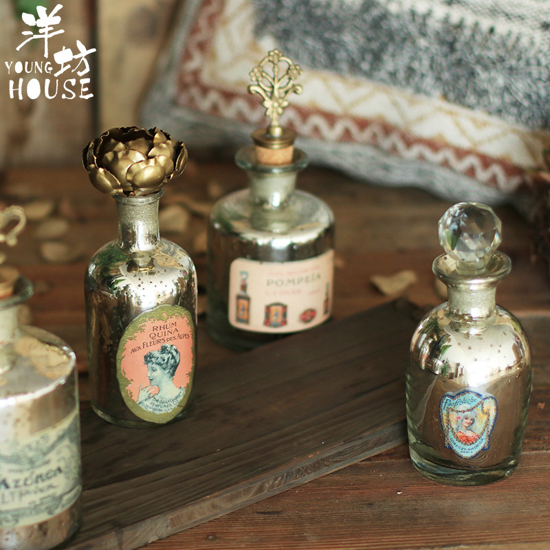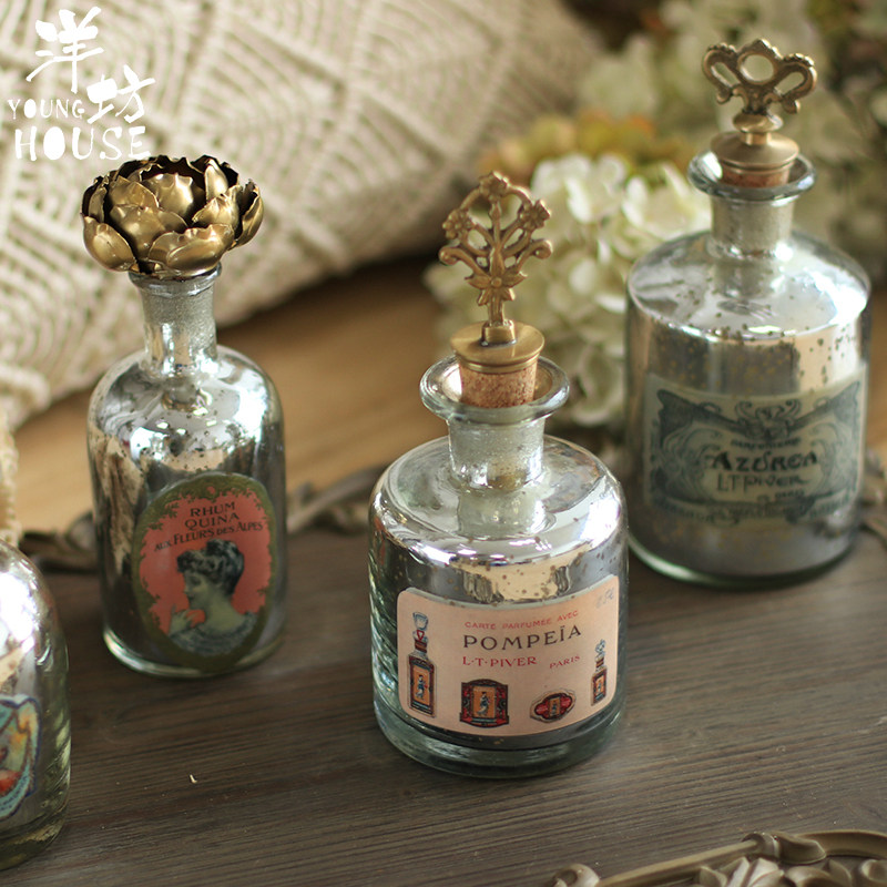 Foreign Workshop Eu Style Retro Make Old Perfume Bottle Glass Brass Creative Pendulum Balsamic perfume Diffusion bottle handmade Home ornament
