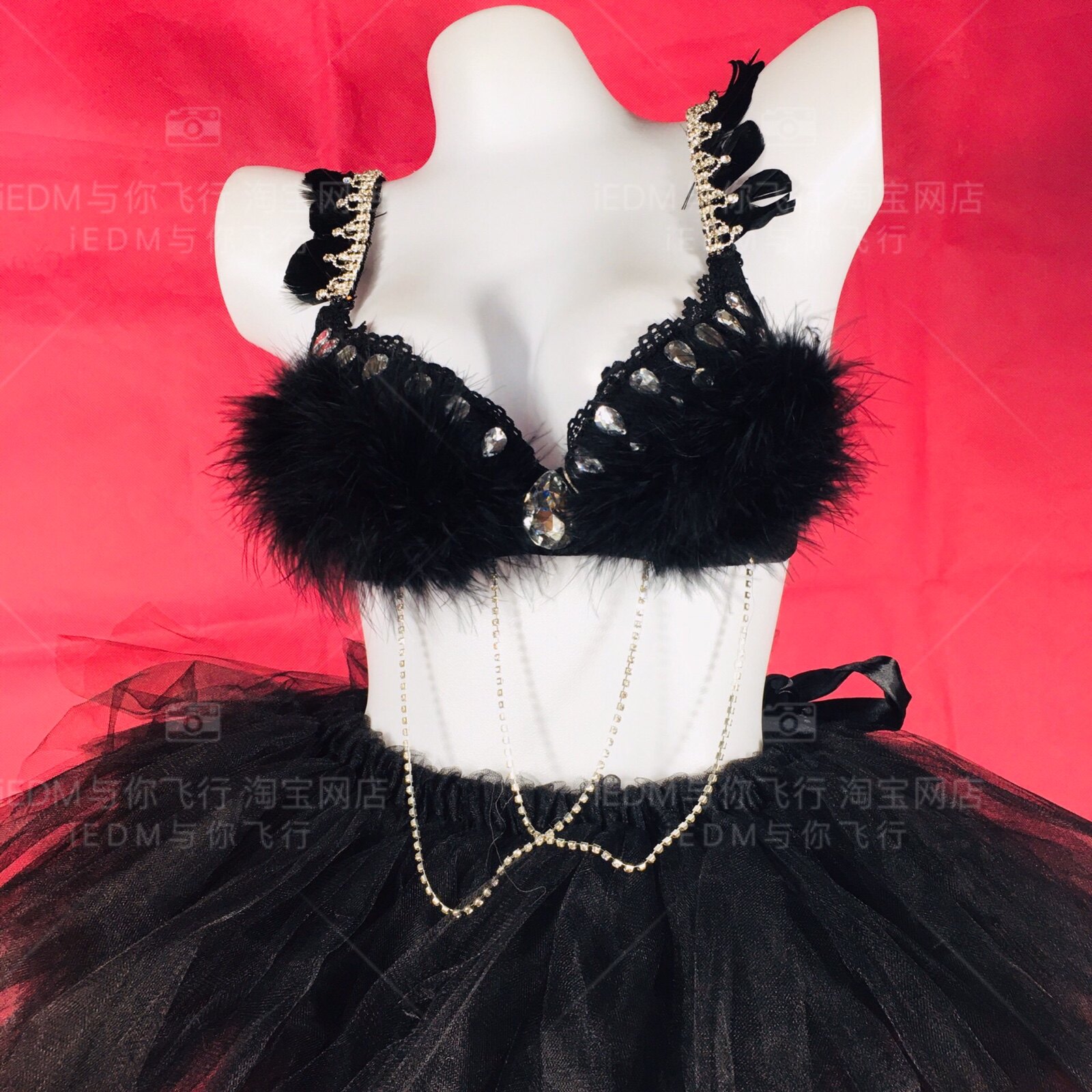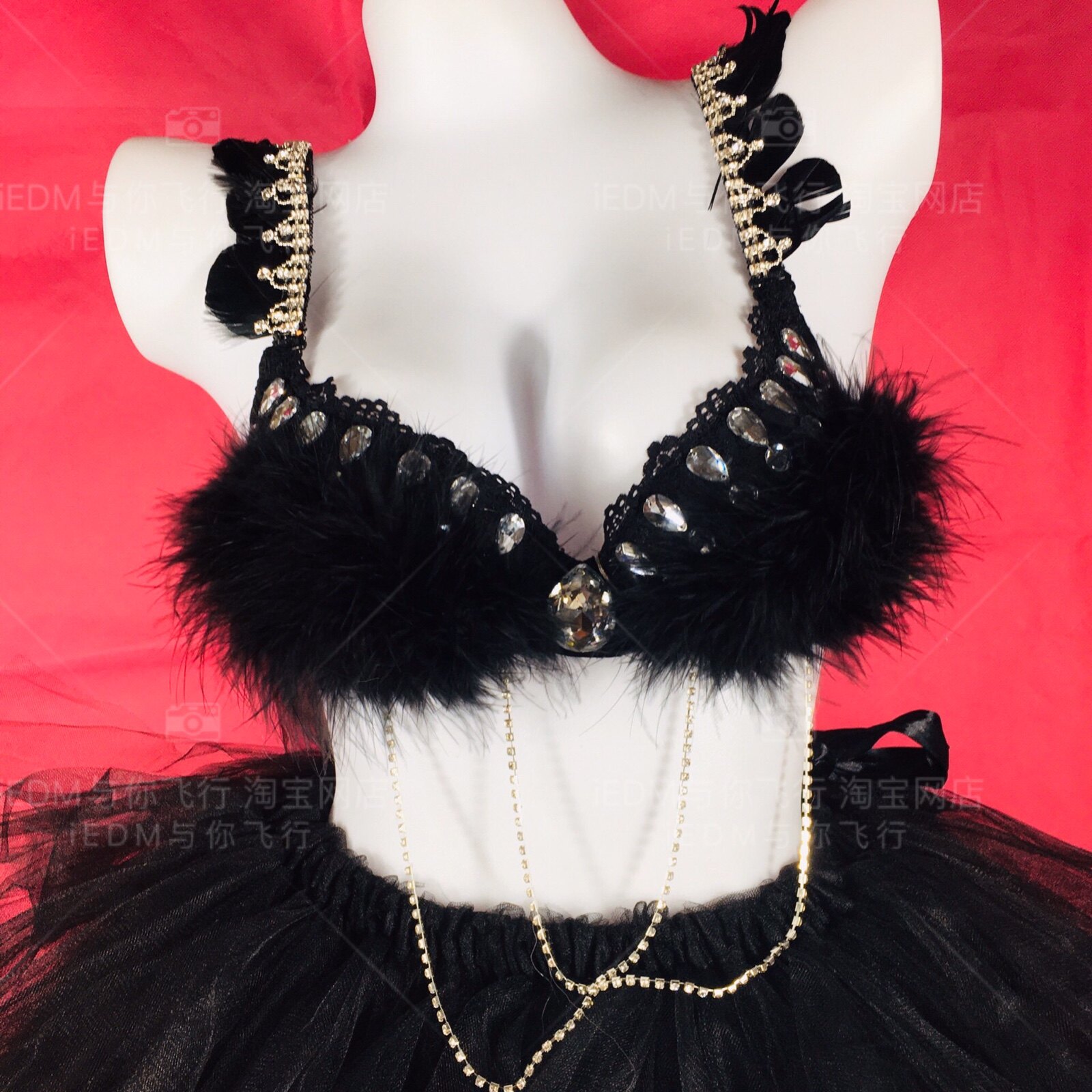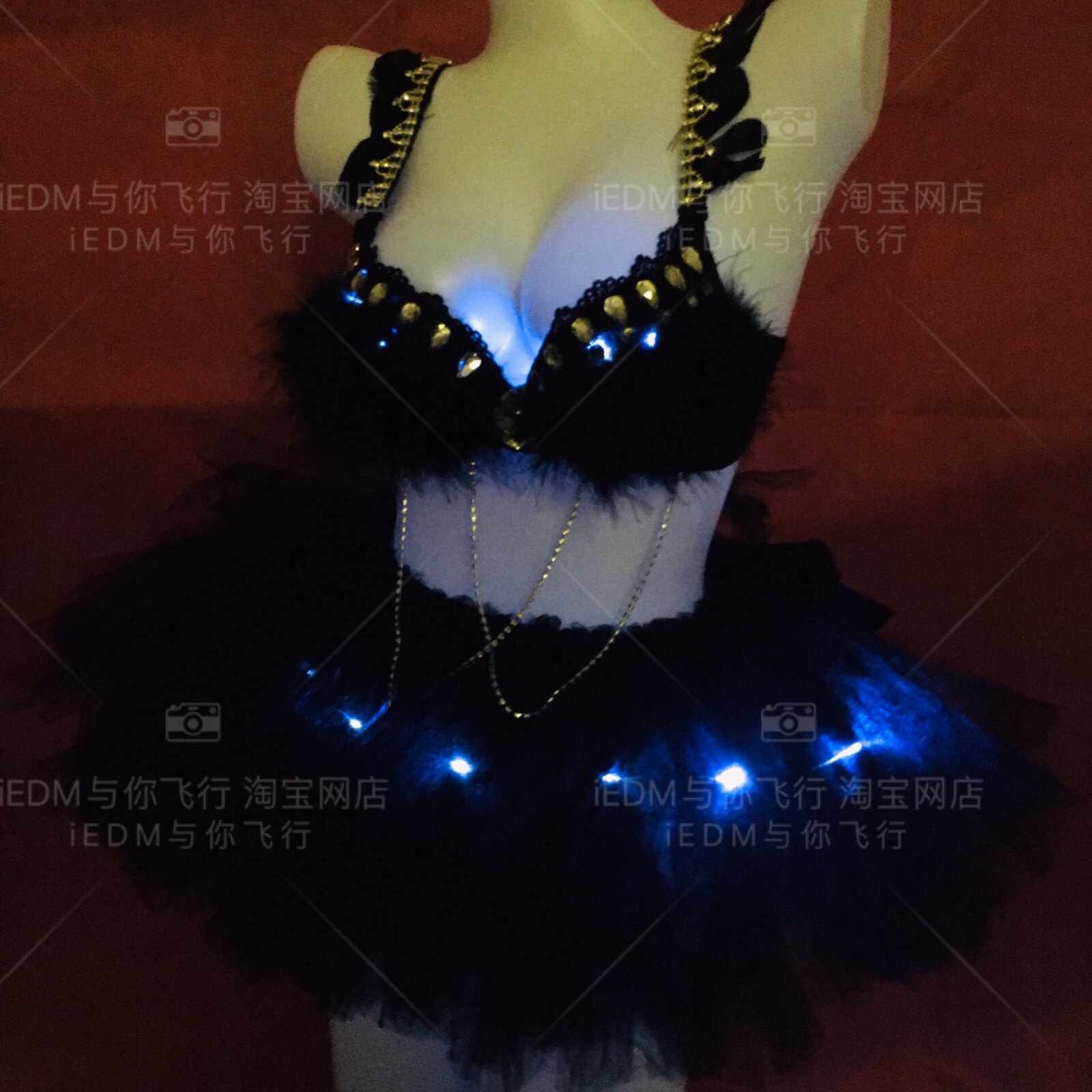 Glow feather bra glitter skirt led bra tutu set electric syllable festival bar bungee dress ladies