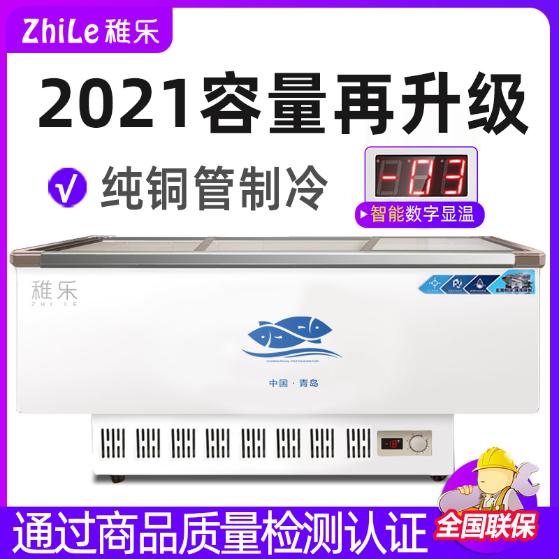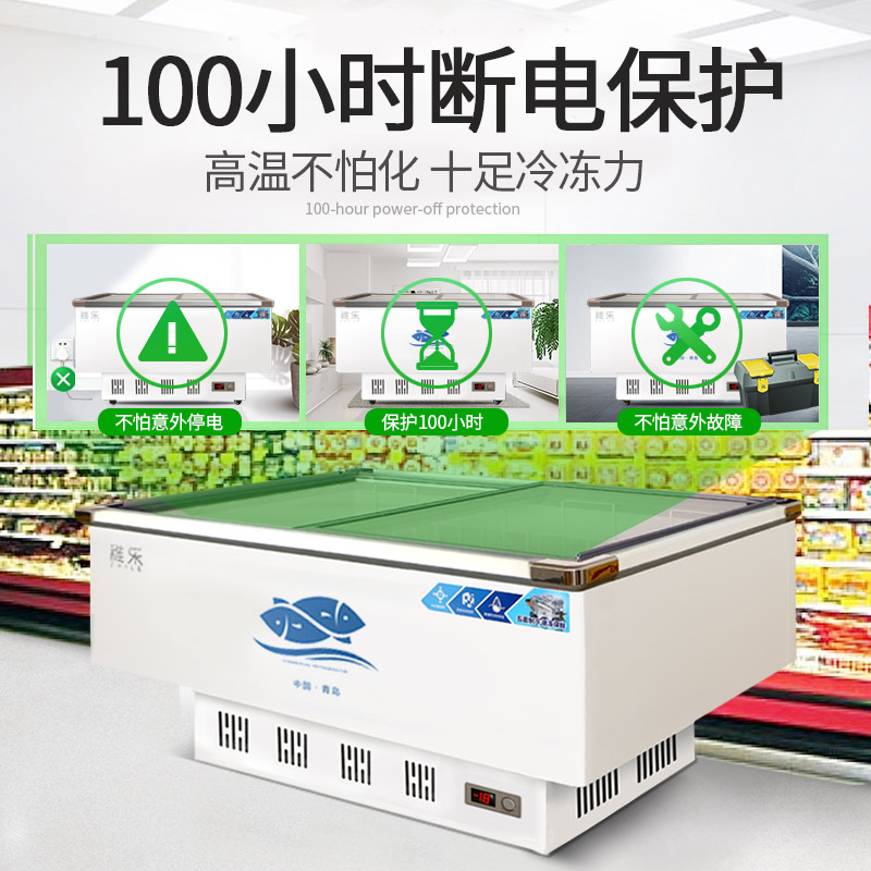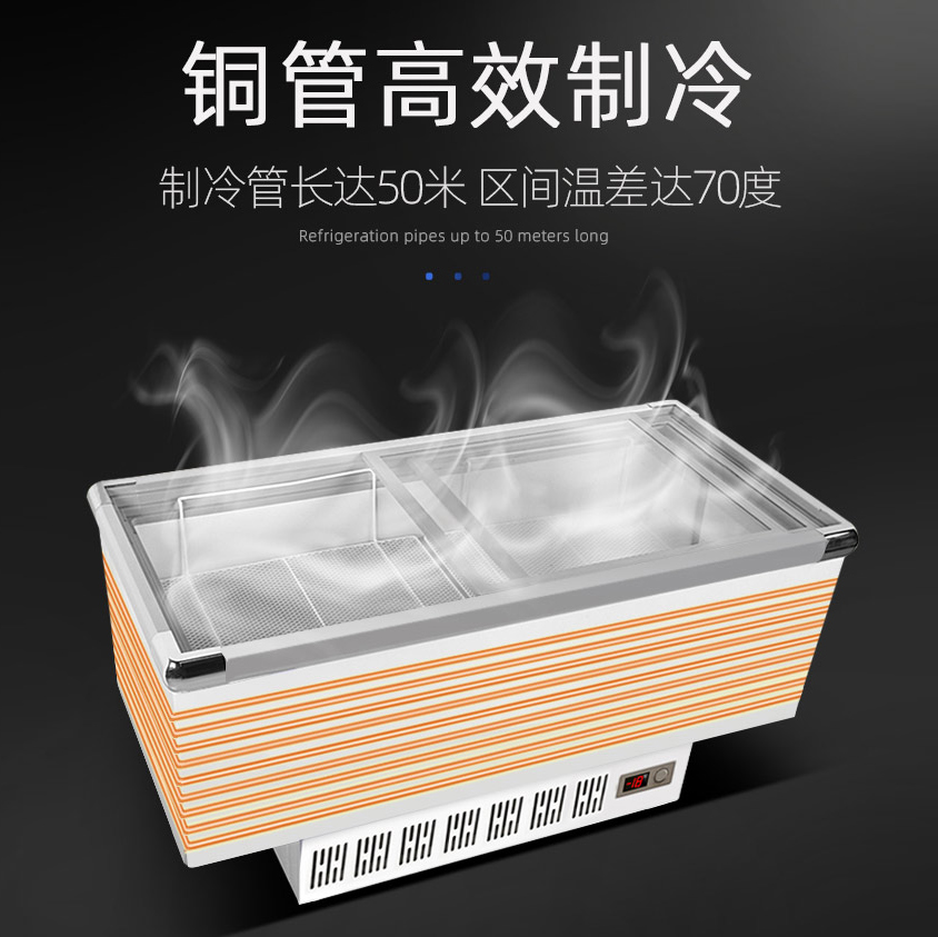 Freezer Commercial Large Capacity Display Cabinet Refrigerated Cabinet Fresh Island Cabinet Horizontal Transparent Glass Commercial Freezer Dual-use