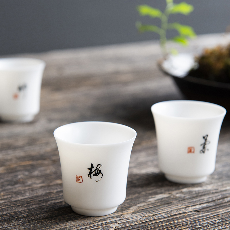 Thin Tire Jade Porcelain Plum Cup Thin Tire Jade Porcelain Lan Cup Thin Tire Jade Porcelain Bamboo Cup Thin Tire Jade Porcelain Chamomile Thin Tire Private Book Made Jade Porcelain Cup