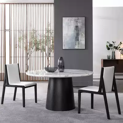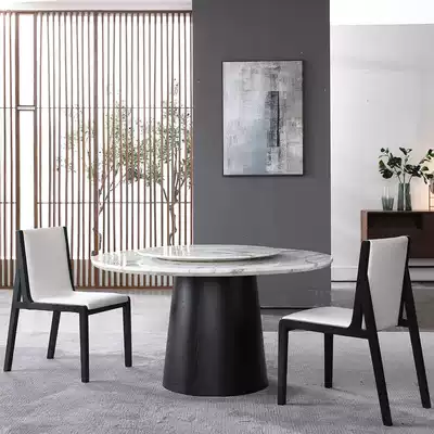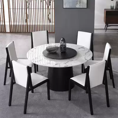 Nordic marble round dining table and chair combination Italian minimalist round dining table Solid wood round table stool with turntable large round table