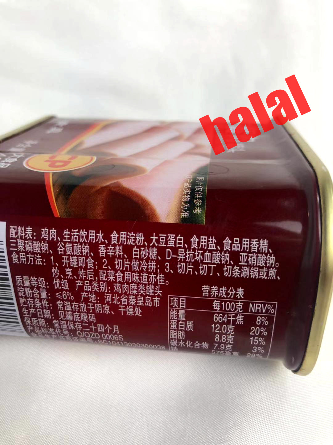 CHICKEN LUNCHEON MEAT Zhengda red can 340g lunch MEAT HALAL