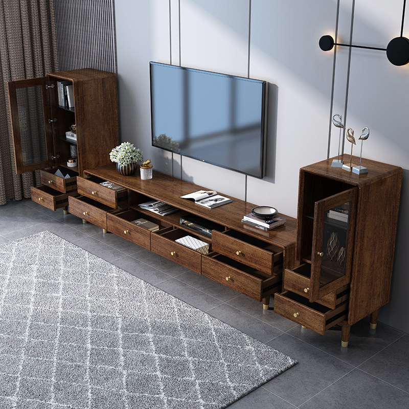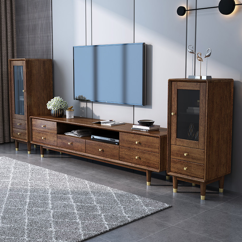 Walnut solid wood TV cabinet combination Nordic modern minimalist floor cabinet living room furniture bedroom storage cabinet storage cabinet