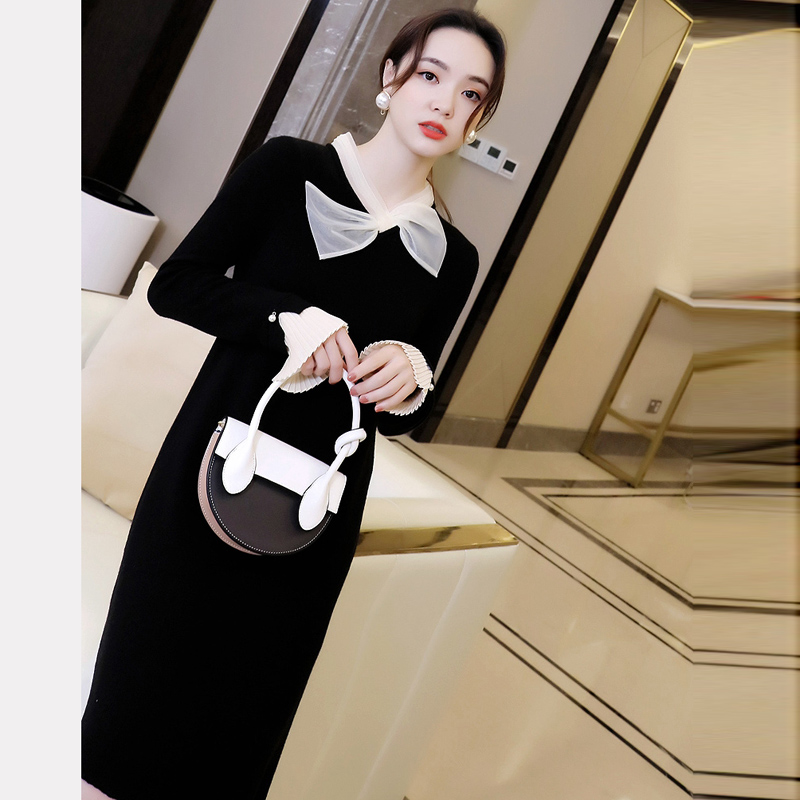 Wool Knit Foreign Dress Woman 2021 Autumn Winter New Collection Waist Butterfly Knot Temperament Slim Mid-Fashion Straight Drum Skirt