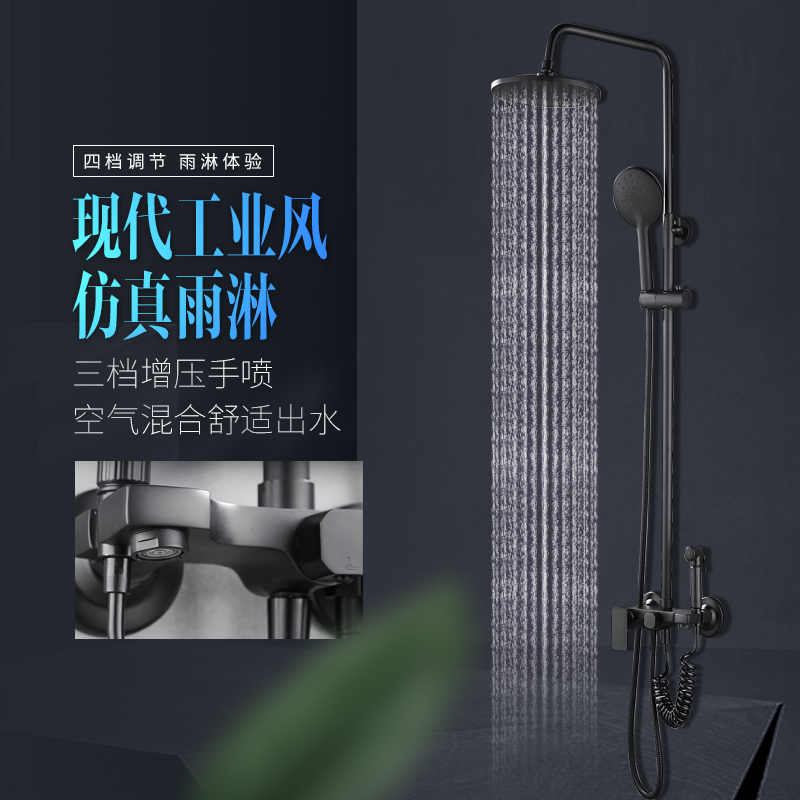 Nordic Bathroom Shower shower head kit all-copper home hanging wall-style bath head Spray Head Booster Retro Black Suit