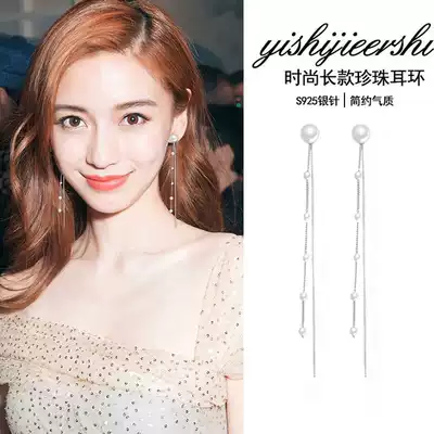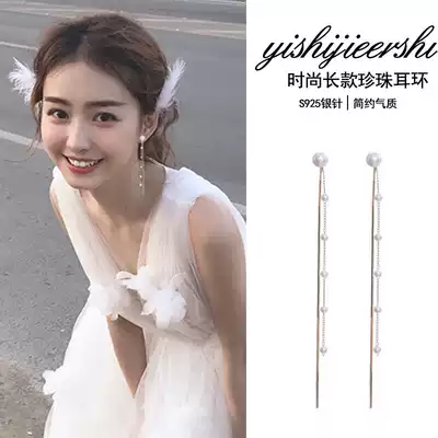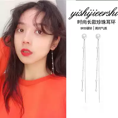 Earrings female 2021 New Tide Pearl tassel long version of ear refining face Korean temperament Net red ear drop ear needle