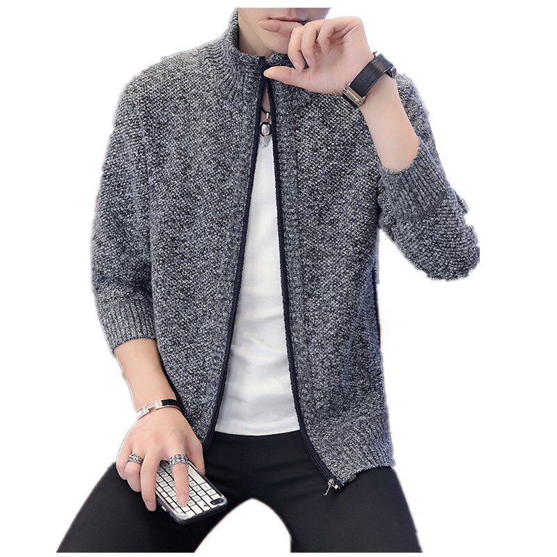 Zipper sweater men's lazy loose men's Korean version of the stand-up collar wear spring and autumn new knitted cardigan jacket cardigan