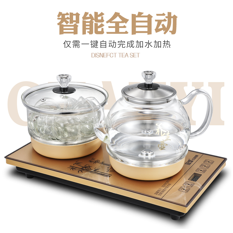 Gold bottom Upper water glass lid disinfection deposit gold bottom water disinfection subsection gold bottom water disinfection subsection (double furnace at the same time heating) with blue light bottom water golden color cooking tea paragraph (double furnace at the same time
