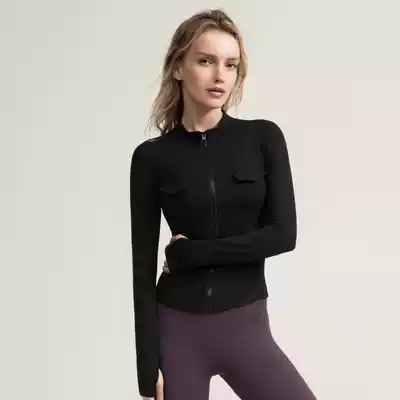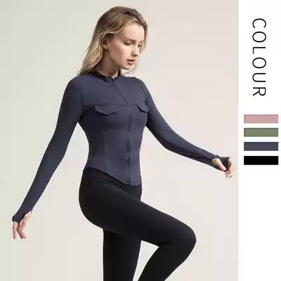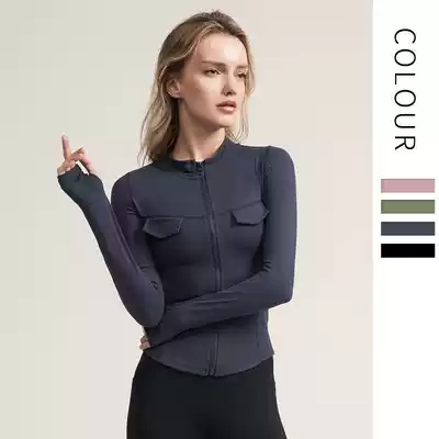Comfortable brushed tooling style sports jacket women's sleeve refers to tight sexy fitness clothes spring and autumn thin long sleeve yoga clothes