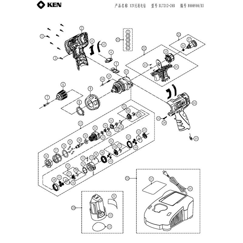 Ruiqi 7212 lithium electric drill accessories switch battery charger drill chuck gearbox rotor case
