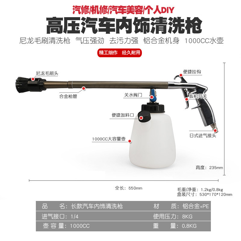 Automotive Pneumatic High-pressure Longcoil Interior Cleaning Gun Ceiling Dry Cleaning Winegun Engine Engine Clean Car Wash tool
