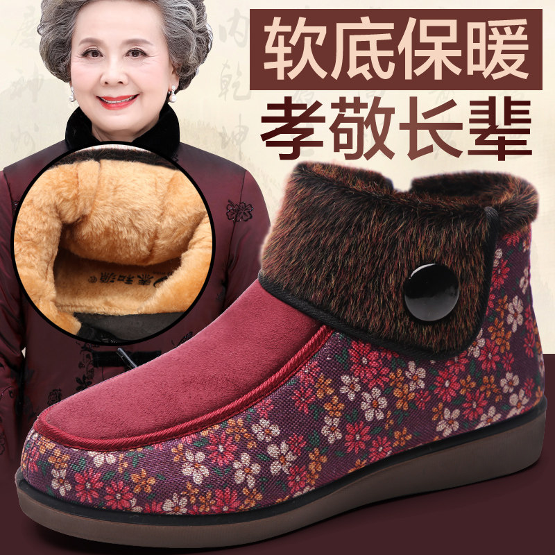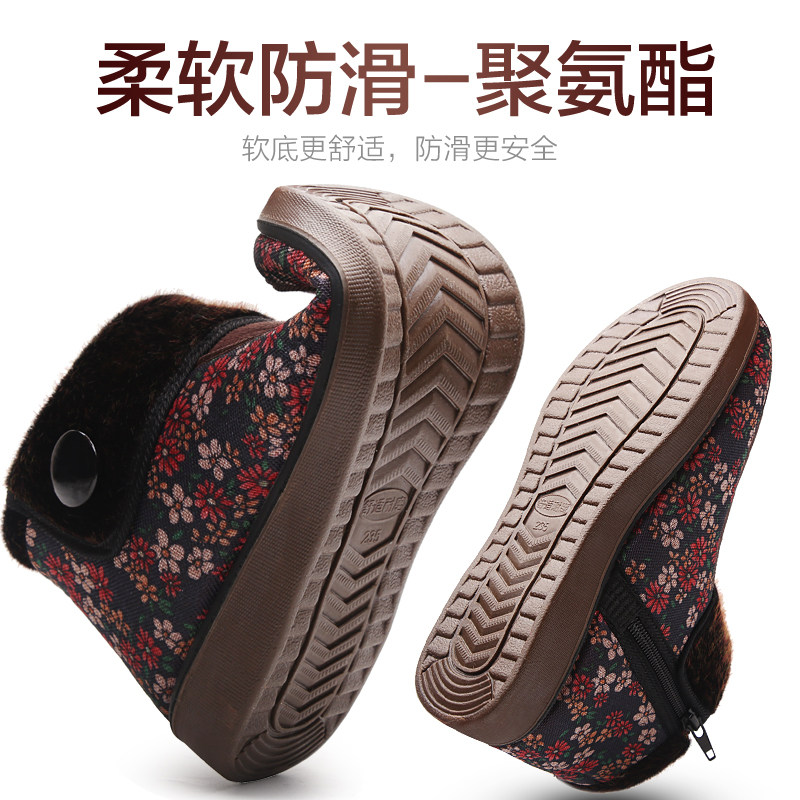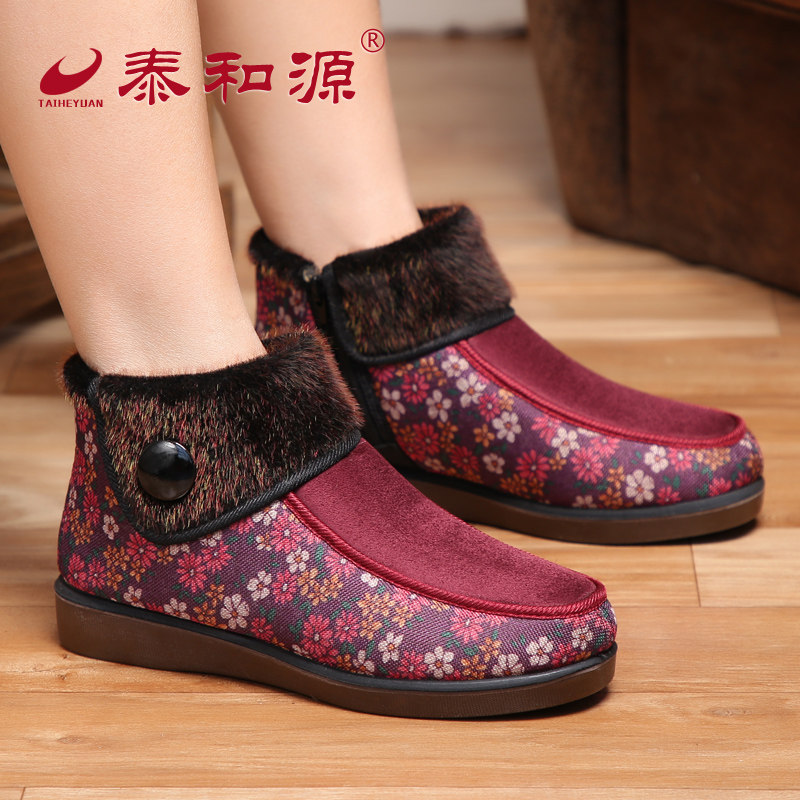 Taiheyuan old Beijing cloth shoes flagship store official women's winter high tube plus velvet warm cotton shoes for the elderly soft bottom non-slip