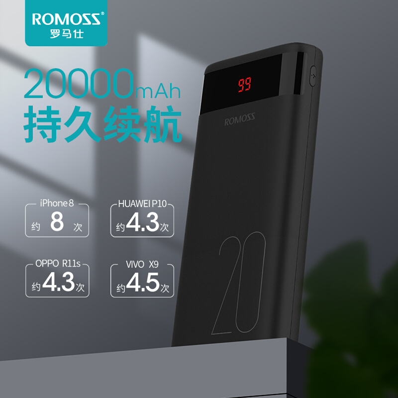 ROMOSS Roman Shi'e 20000m mAh time Mobile Large-capacity Flagship Suitable for Xiaomi Apple Huawei Honor mobile phone portable action power