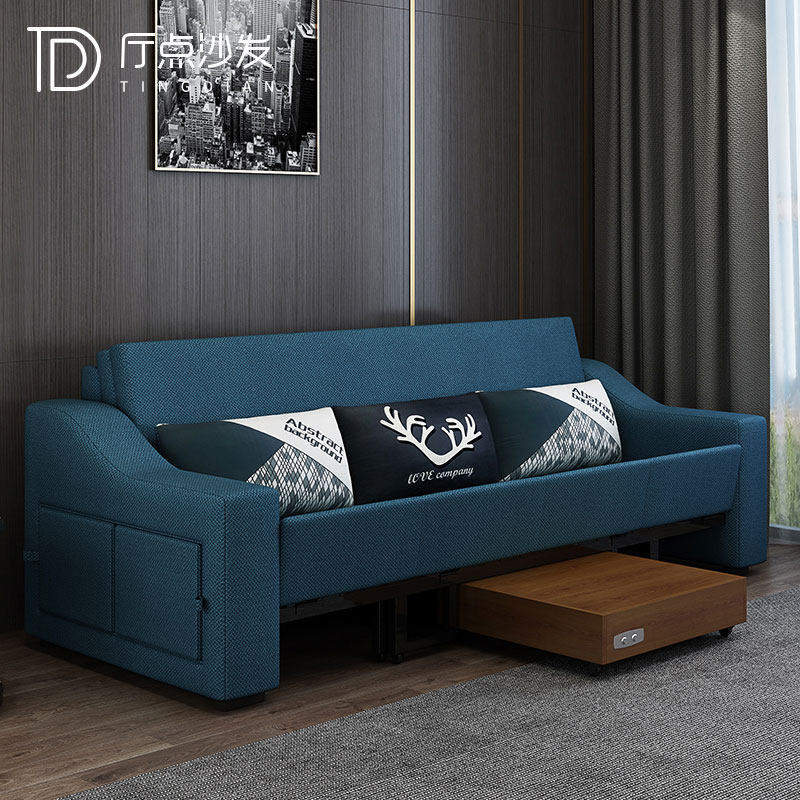 Sofa bed foldable double small apartment telescopic push-pull folding bed multifunctional fabric coffee table solid wood sofa bed