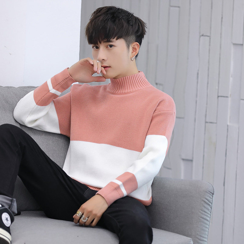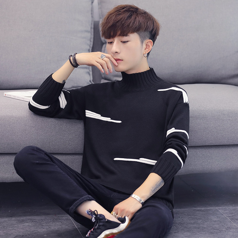 Semi-tall-collar sweater men and Korean edition of trendy teen sleeve, lazy wind and winter knitting shirt student style