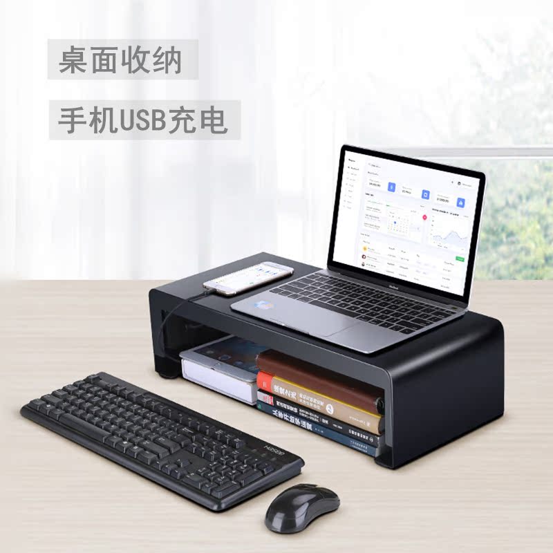 Computer screen heightening frame desktop storage with platoon plug USB charging metal base pen electric bracket Depository
