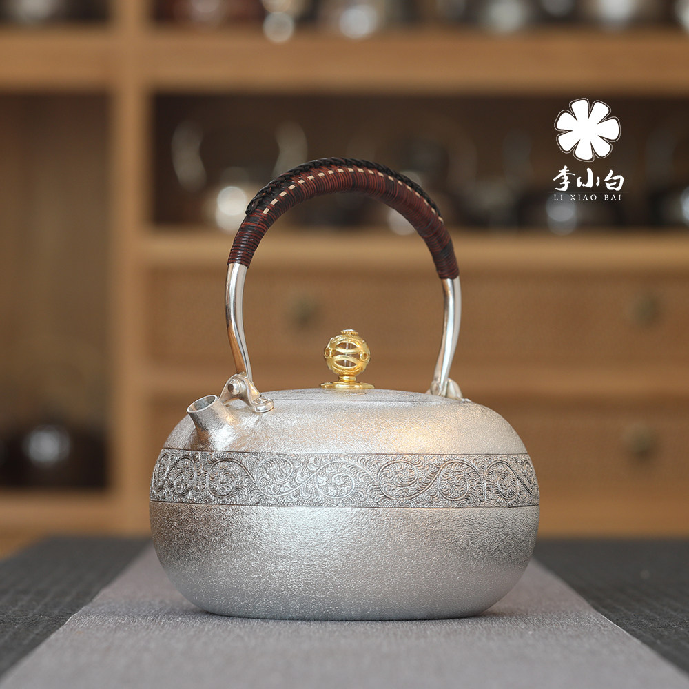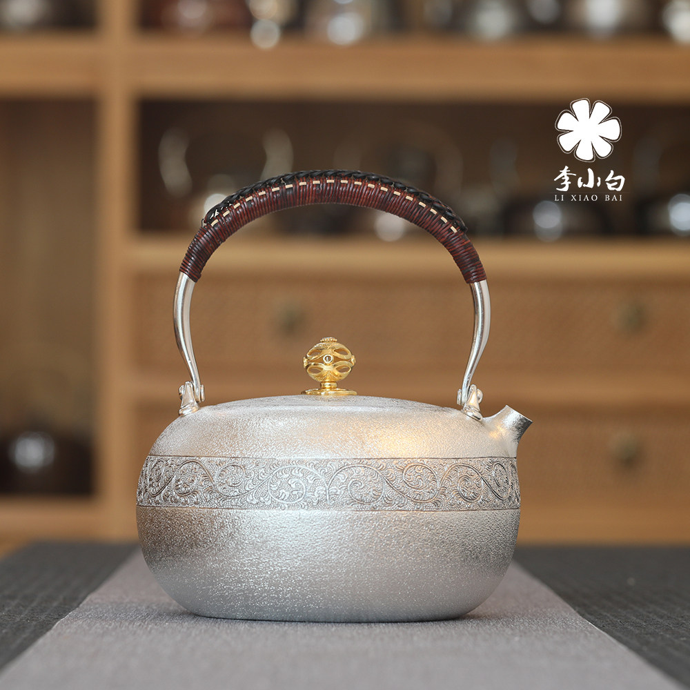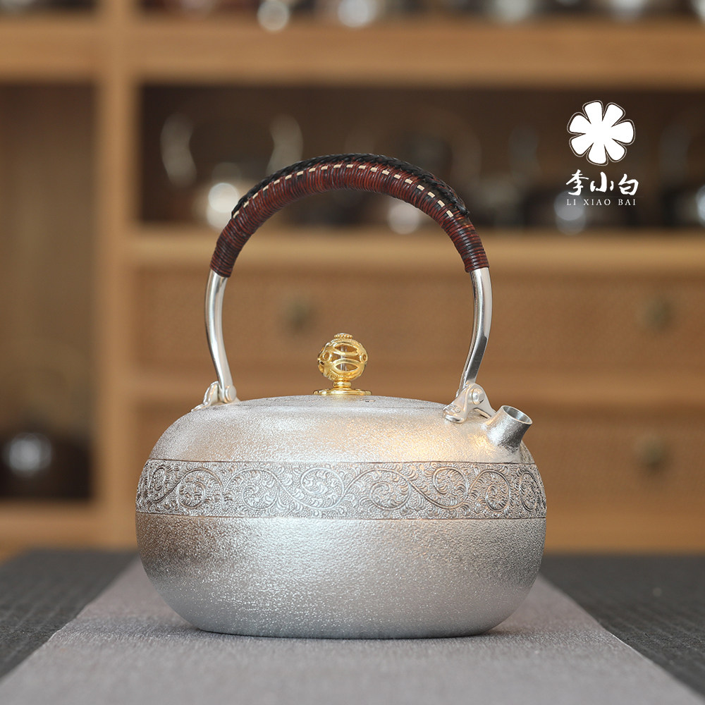 Li Xiaobai pure silver 9999 burnt water silver pot pure silver silver pot master carved silver pot handmade teapot silver pot