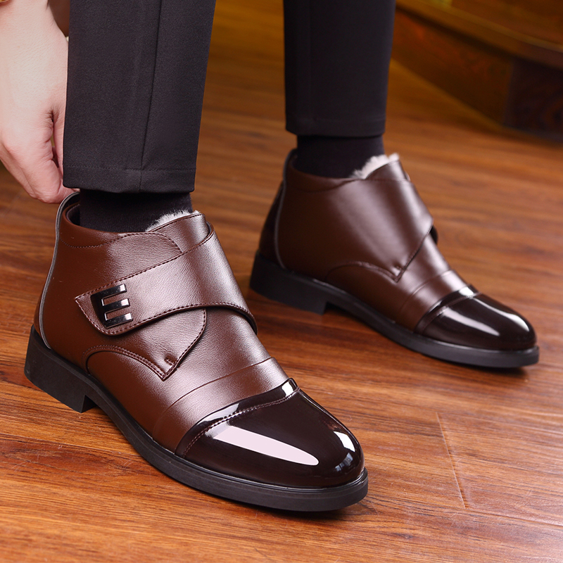 Winter men's cotton shoes velvet business dress high barrel cotton shoes Men's winter wool thickened warm non-slip leather boots