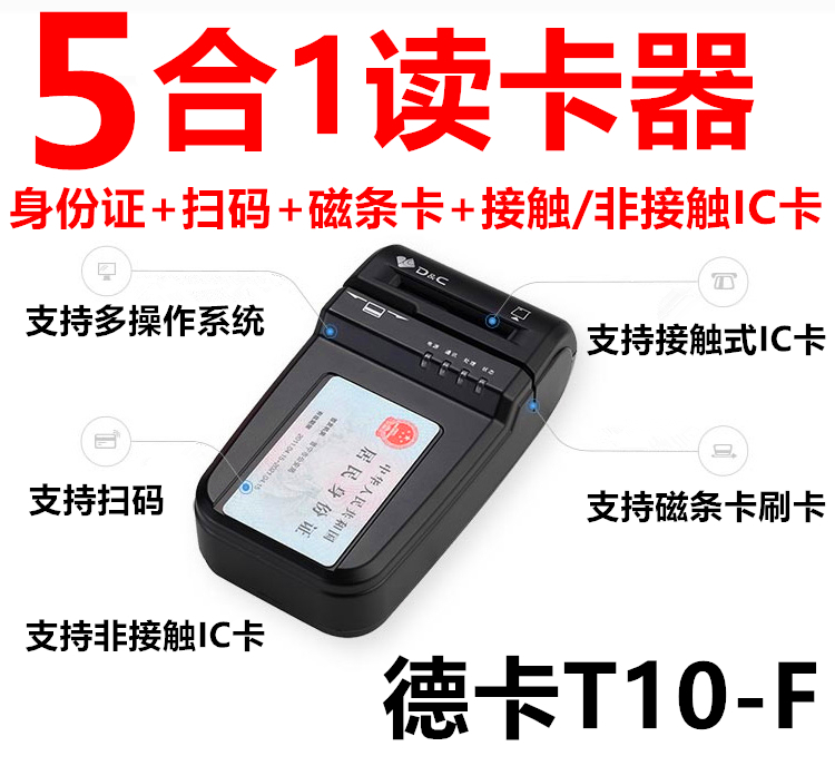 Deka T10f all-in-one smart card reader IC card reader second-generation certificate medical insurance card magnet strip card QR code