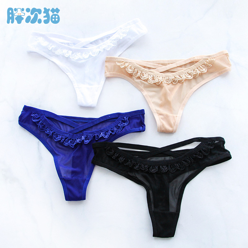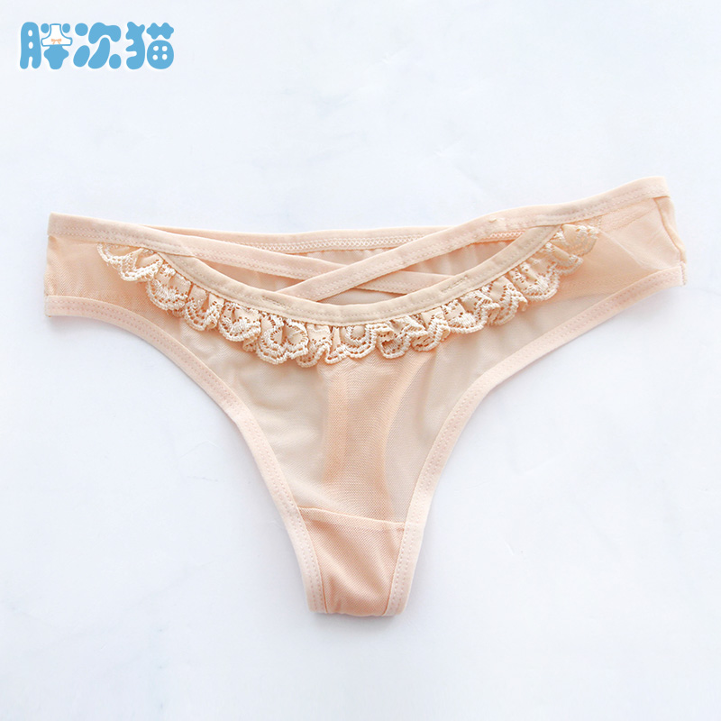 (2 pieces) Ladies Low waist Underpants Transparent Ding Pants Tennis lace Lady Breathable Fatty-Taobao