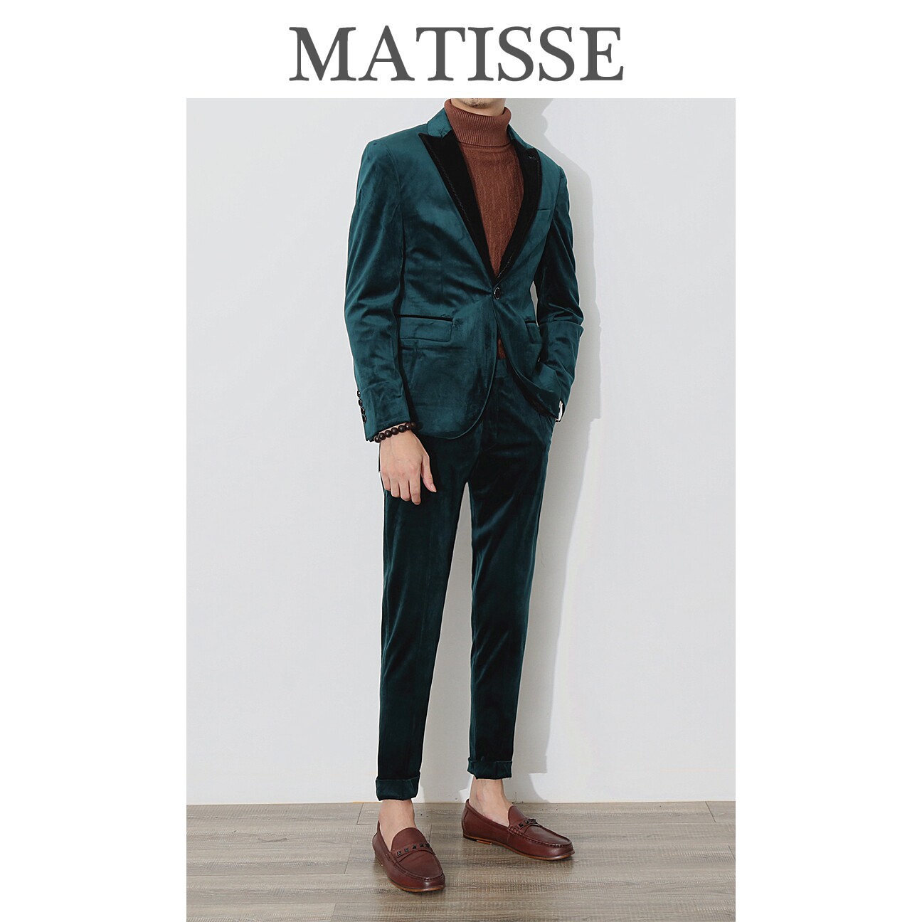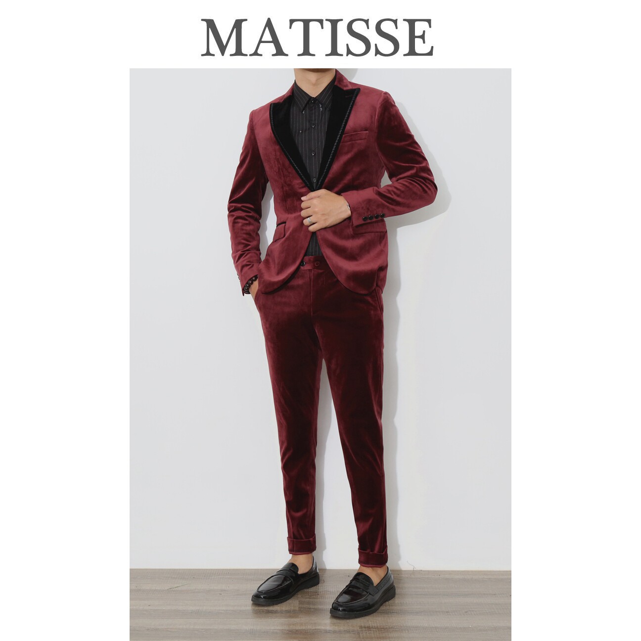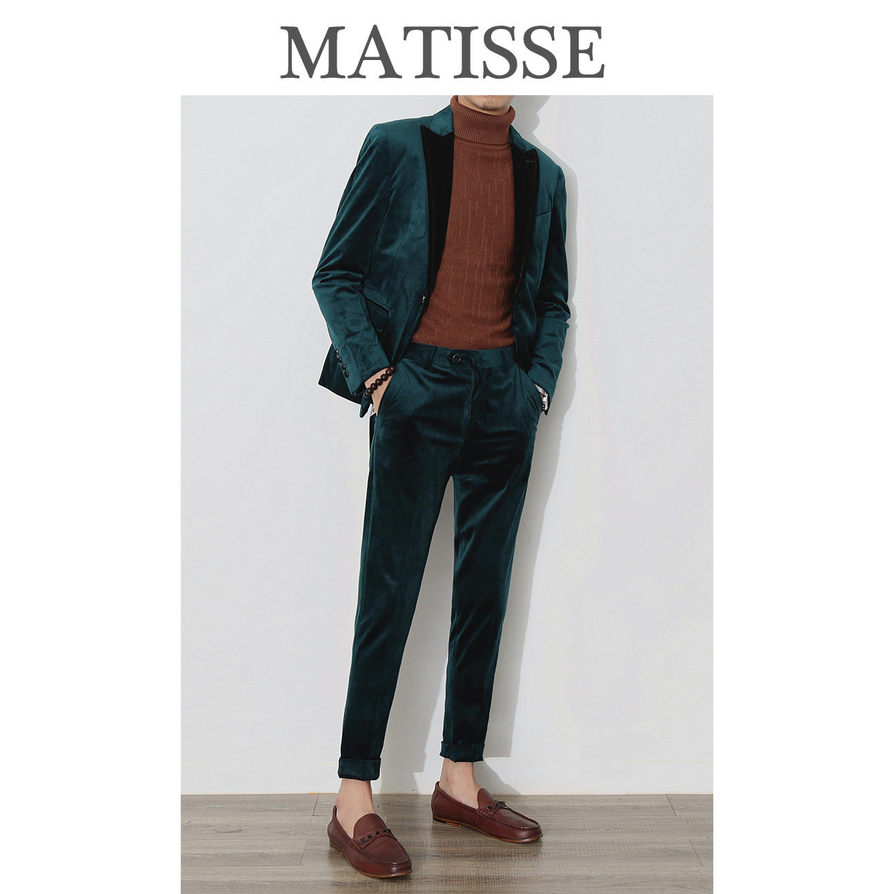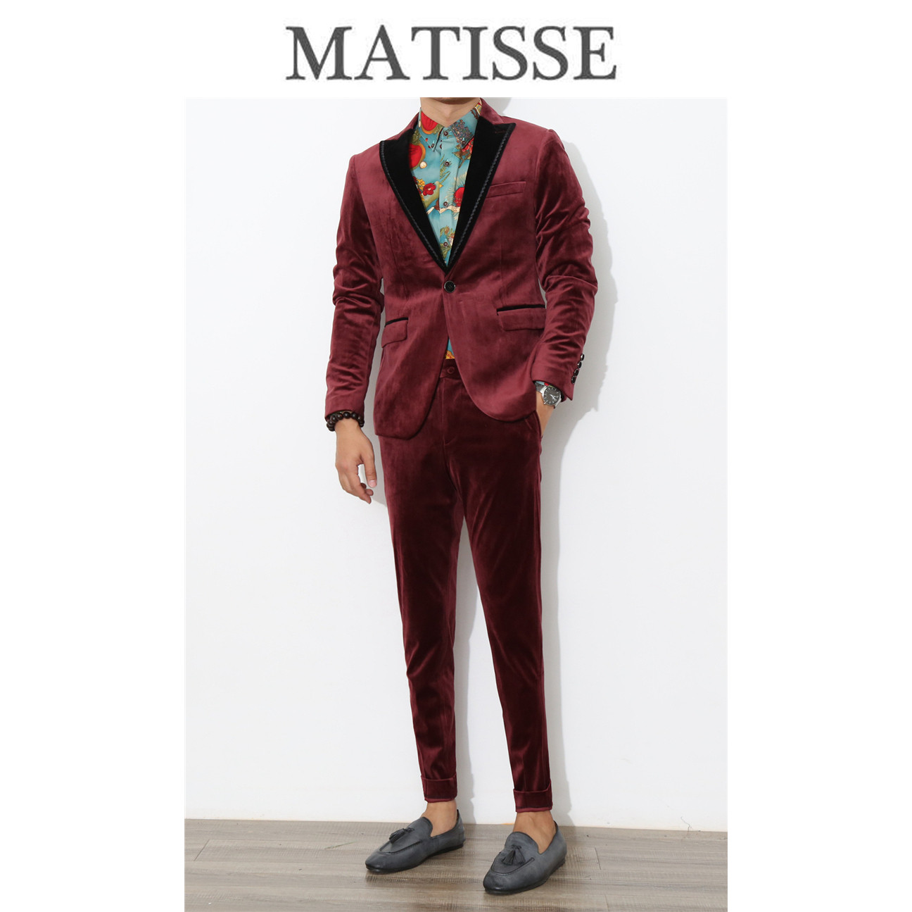 Korean trend youth Briton wind and Korean gold velvet tide men practice handsome casual small suit set two pieces