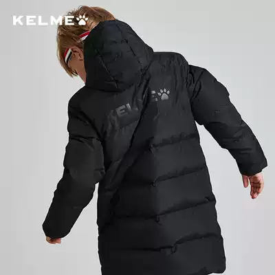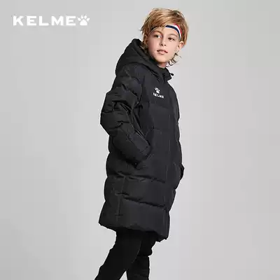 KELME KIDS winter children's sports cotton padded clothing medium and long version of football training warm hooded cotton coat children's clothing coat