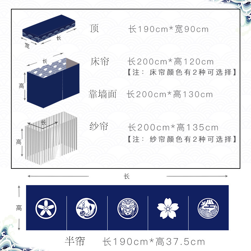 (Suri) Top one (surf) white yarn curtain 2 pieces (surf) Tibetan green yarn curtain 2 pieces (surf) Tibetan green bed curtain 2 pieces (surf) white bed curtain 2 pieces (in a wave) leaning against wall 1
