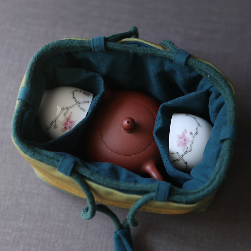 Spring Clay Ancient Painting Thickened Cotton Cloth Containing Travel Bag Cloth Bag Tea Tea Leaves Jar Teapot Tea Cup One Pot of Two-Cloth Bag