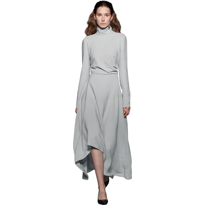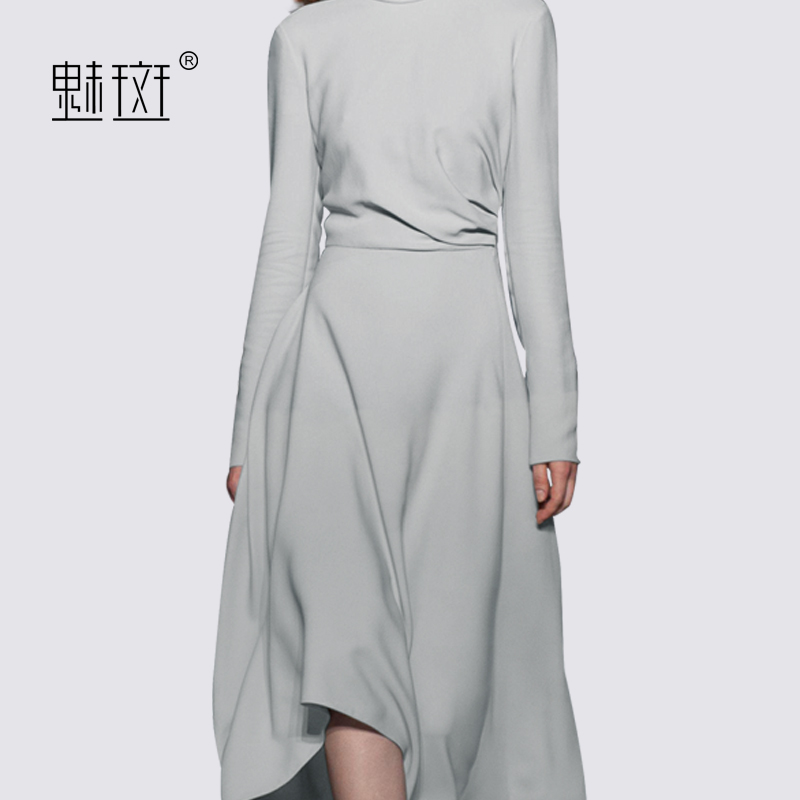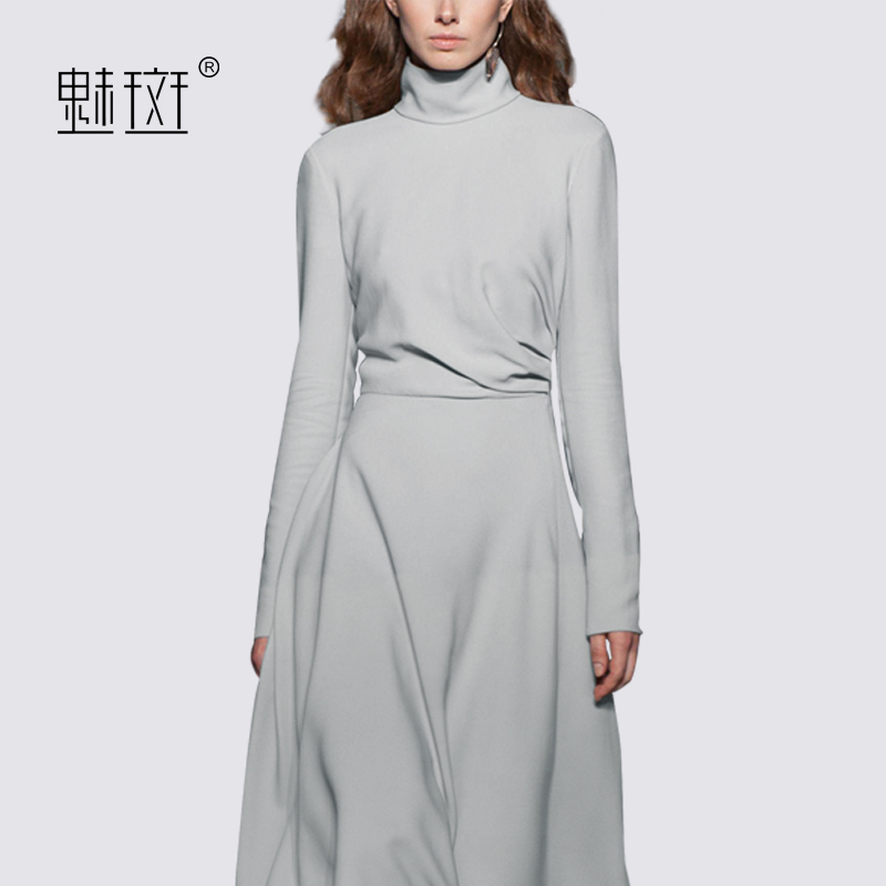 Spring dress 2023 new mature style semi - collar dress in the long waist - end A - letter skirt