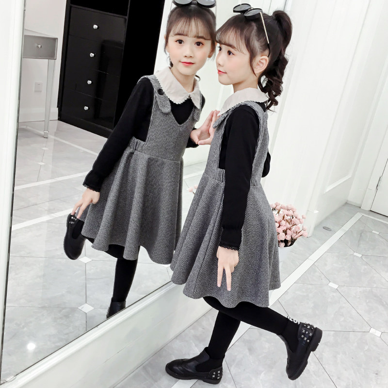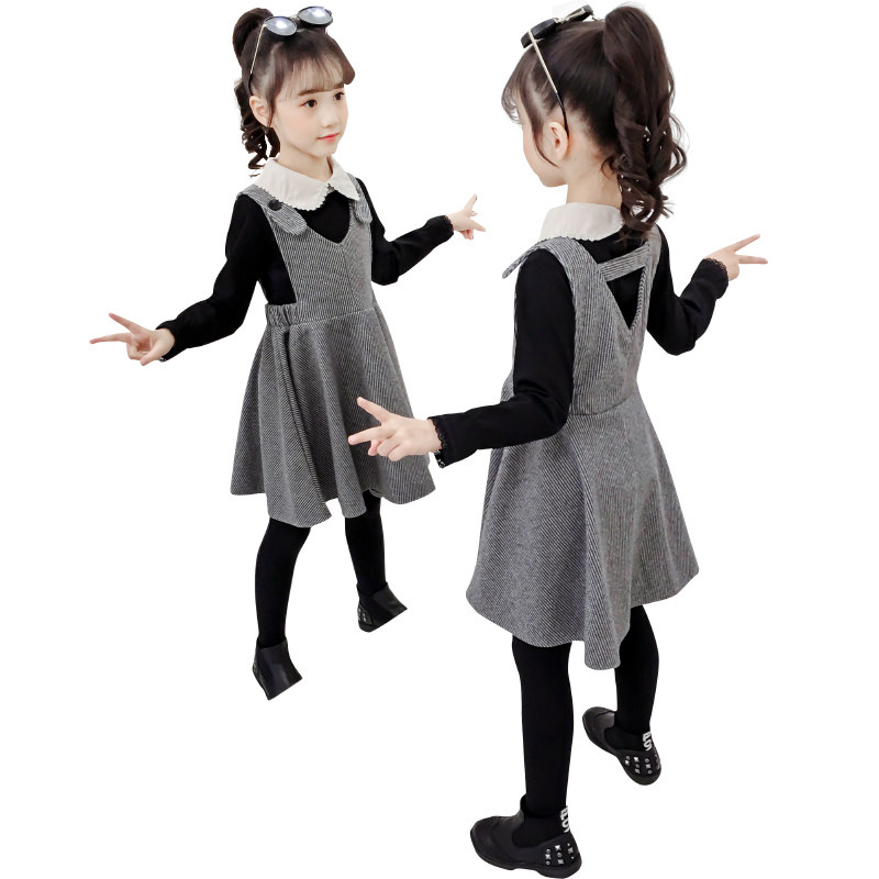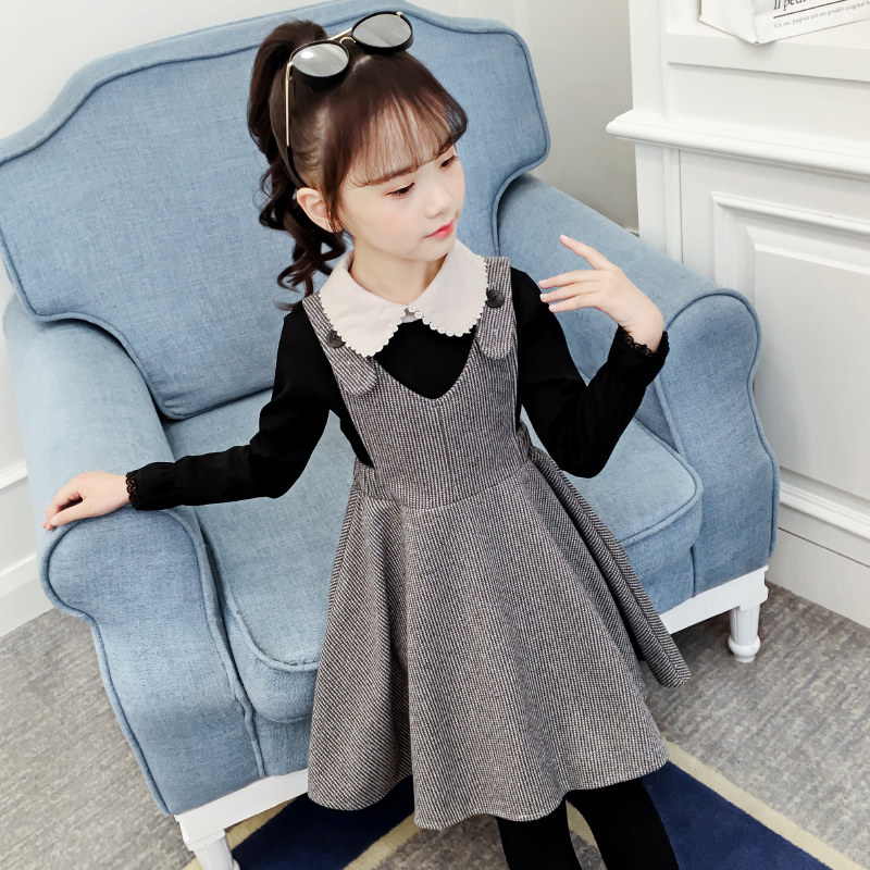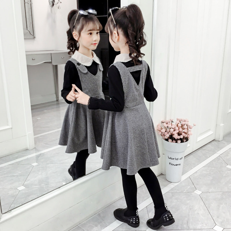 Girls dress suit autumn 2021 new Korean version of the foreign school spring and autumn girls doll collar skirt two-piece set