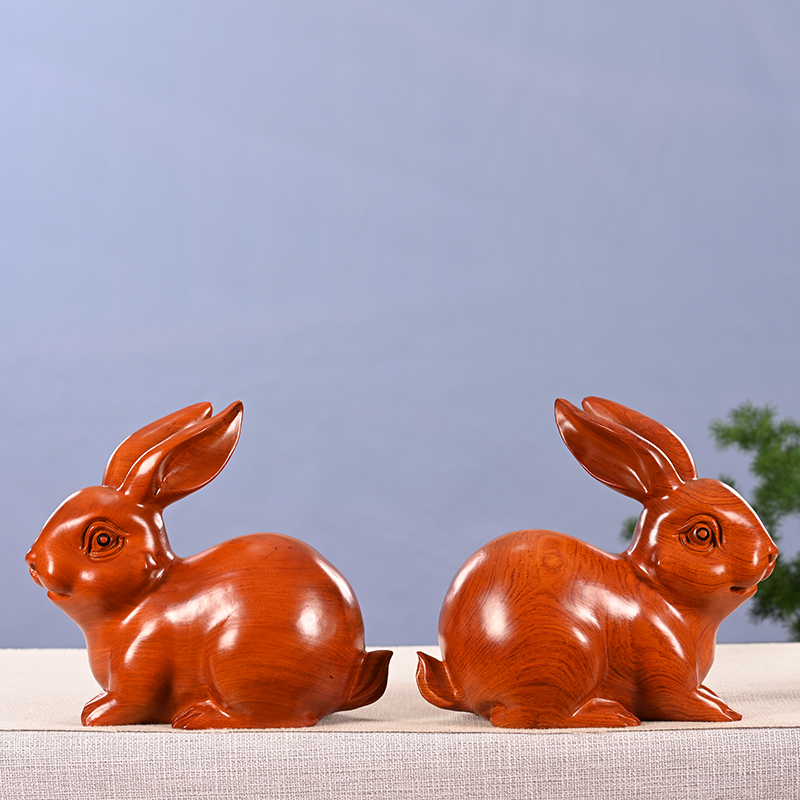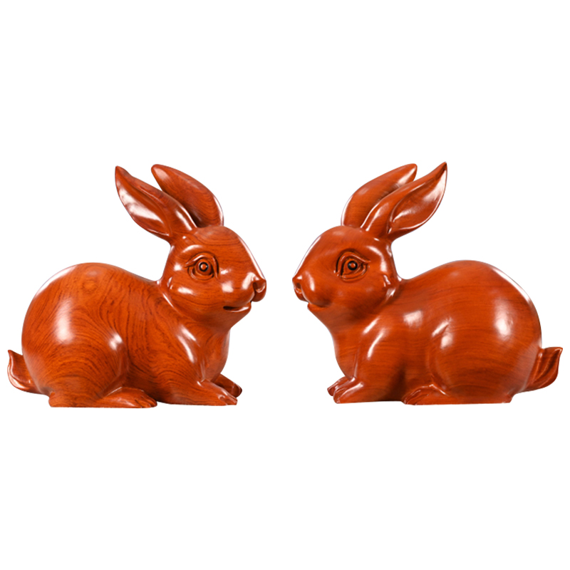Flowers Pear Wood Carvings Rabbit Pendulum Pieces Home Living Room Feng Shui Decoration Solicit Property Solid Wood Engraving Crafts Gift Hem Decorated Red Wood Zodiac Rabbit