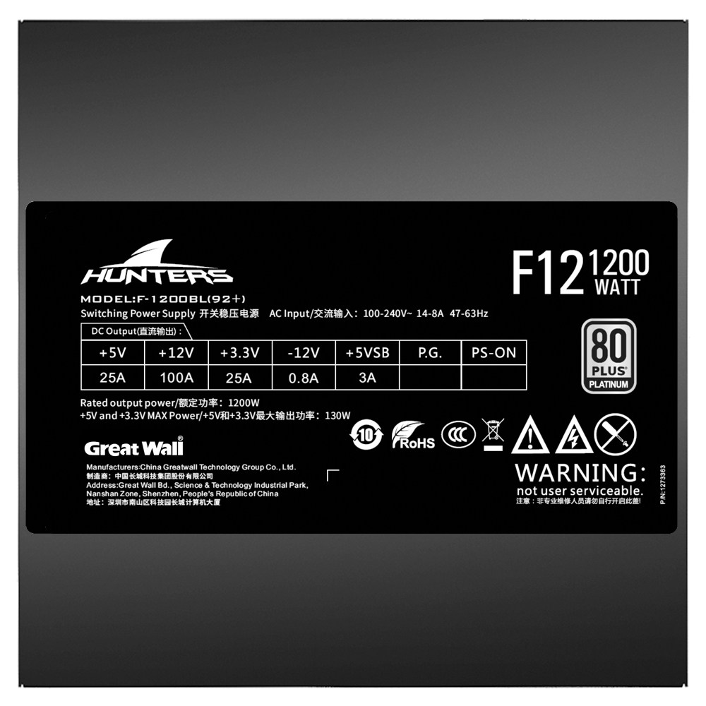 Great Wall V8 platinum power supply F8 F10 F12 desktop game mute full module 1200W power supply dual 8p graphics card