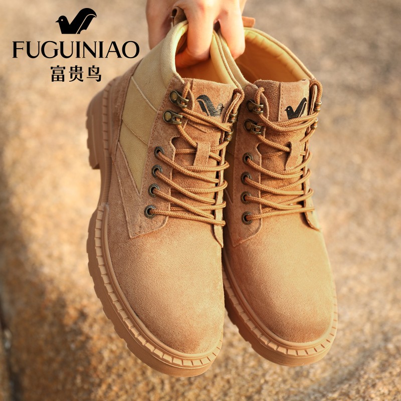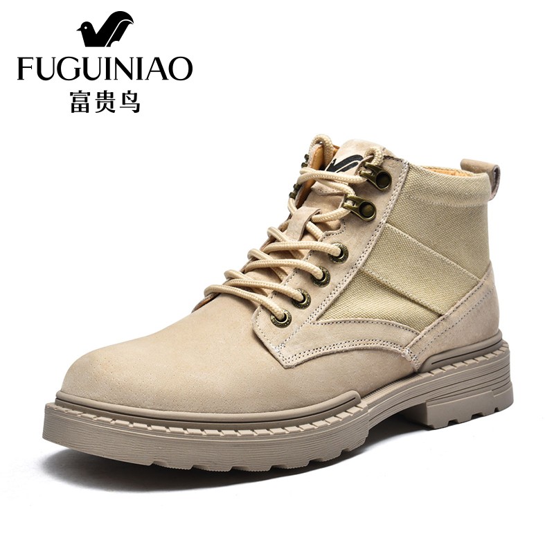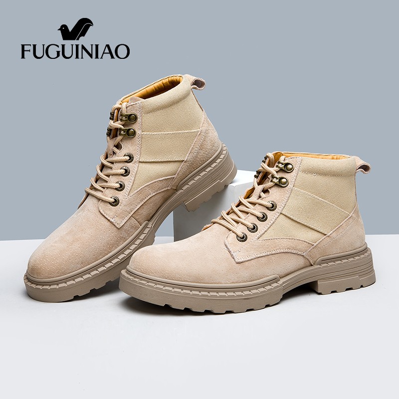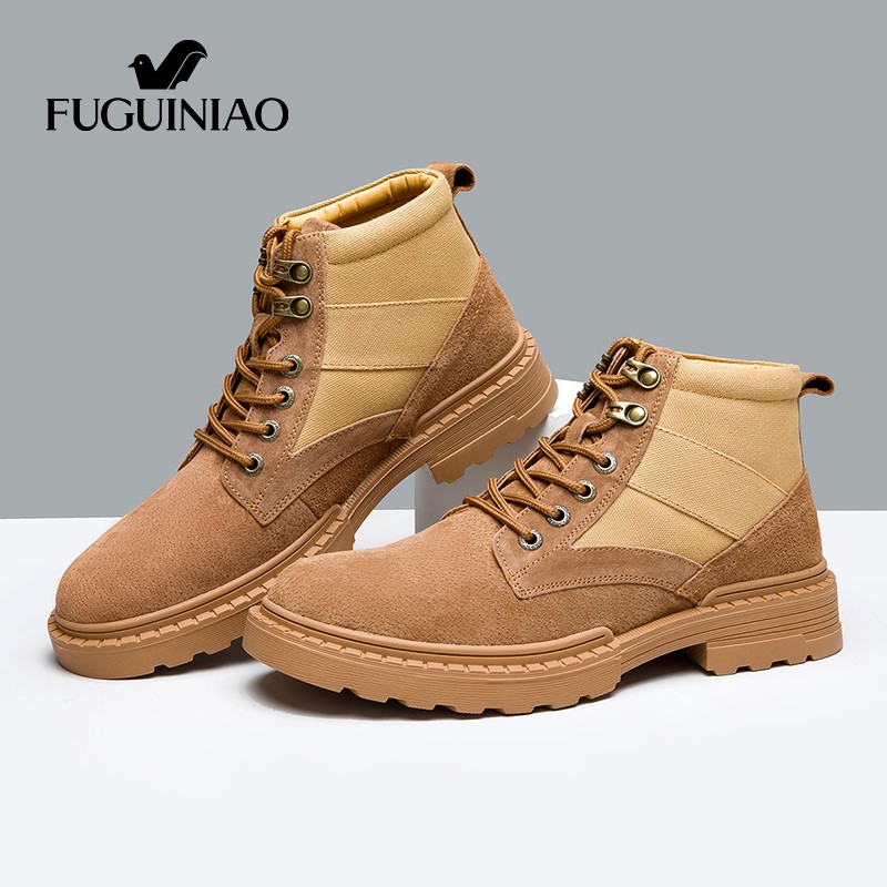 Fuguiniao leather autumn and winter Martin boots men's mid-cut all-match Korean version retro tooling boots men's nubuck leather big-toed shoes