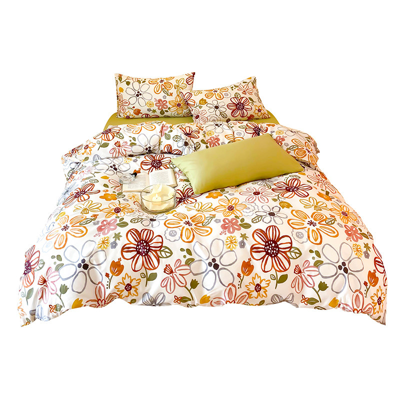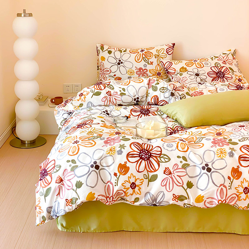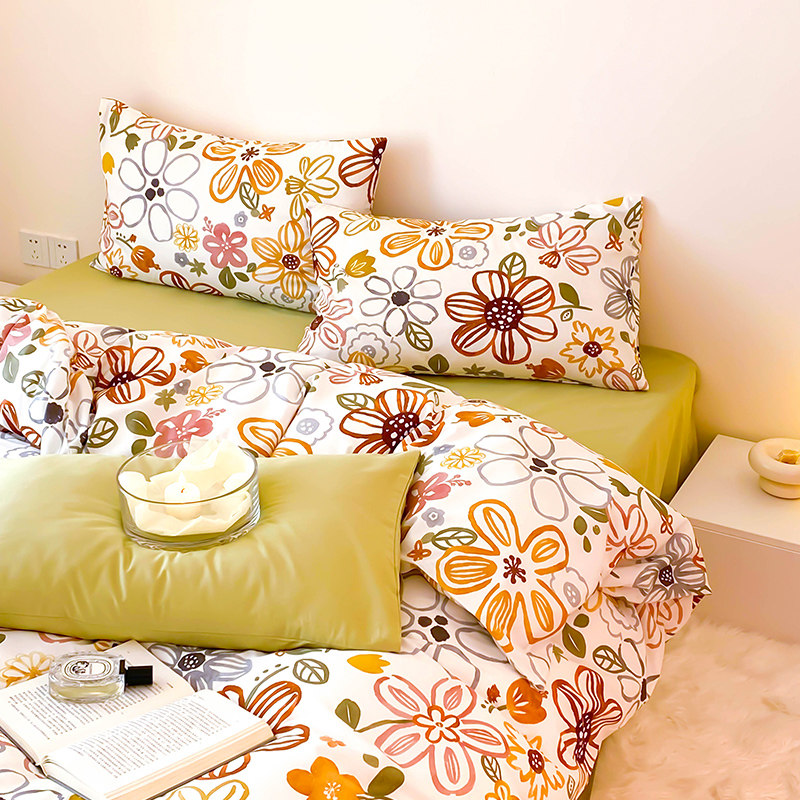 Nordic Wind Hand Painted Pure Cotton Bed Four Pieces Of Whole Cotton Quilts Covered Student Dormitory Bed Linen Three Sets 1 8m Bed Gasawara-Taobao