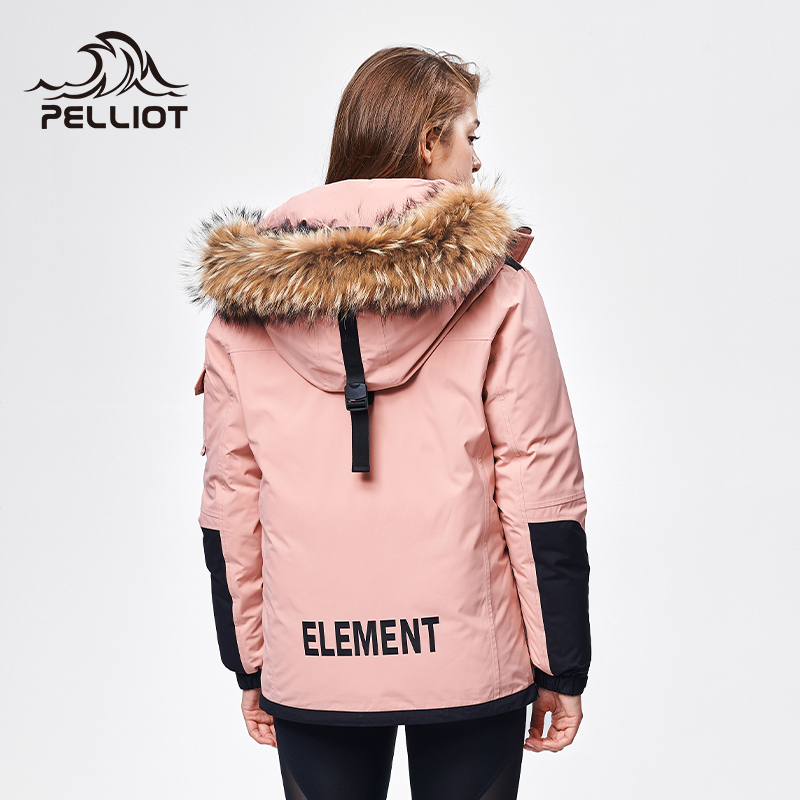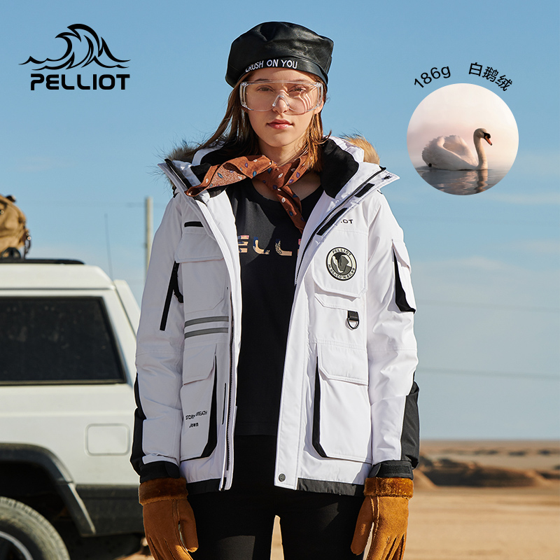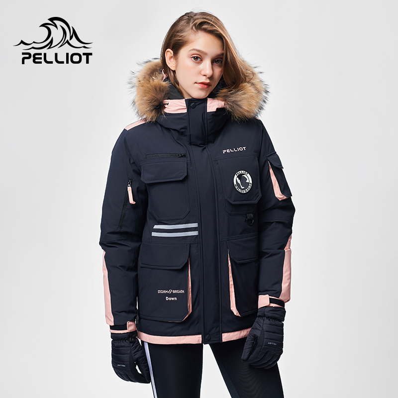 Burhi and autumn winter tooling style white goose down feather clothes lady large woolen collar thickened warm windproof and waterproof submachine clothes