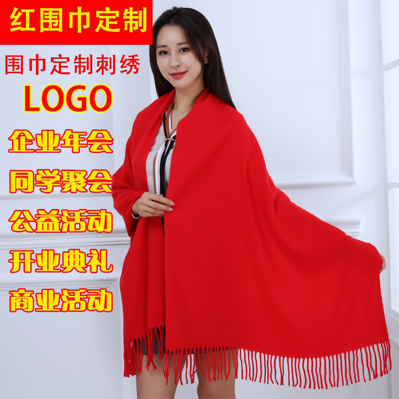 Custom-made LOGO red scarf ladies Chinese red middle-aged and elderly elderly scarves women's and men's scarves red activities