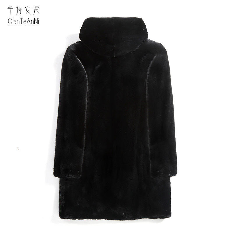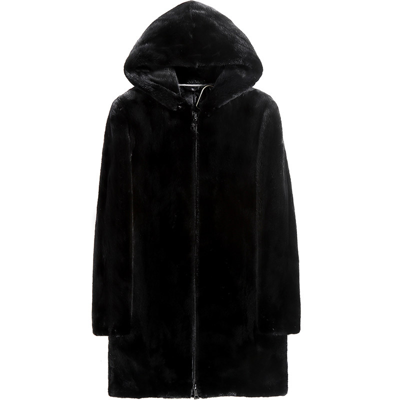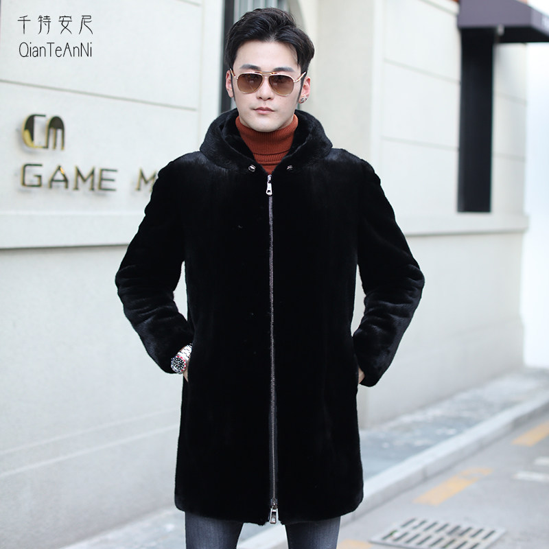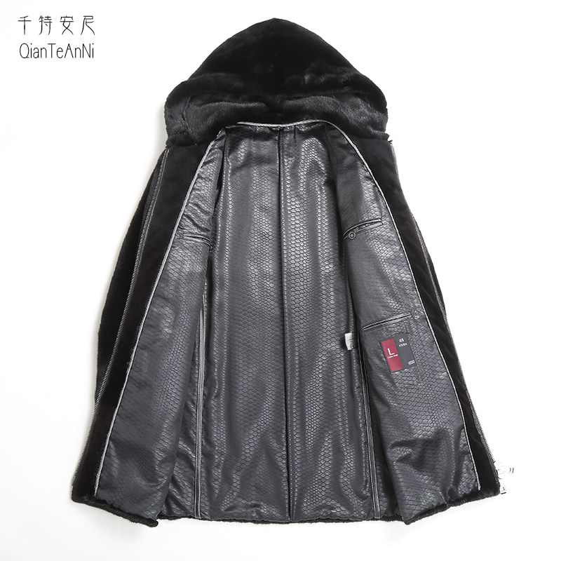 Long version of the pull chain with even cap wind clothing imported whole mink leather big coat men real water mink velvet sea ningning leather grass jacket