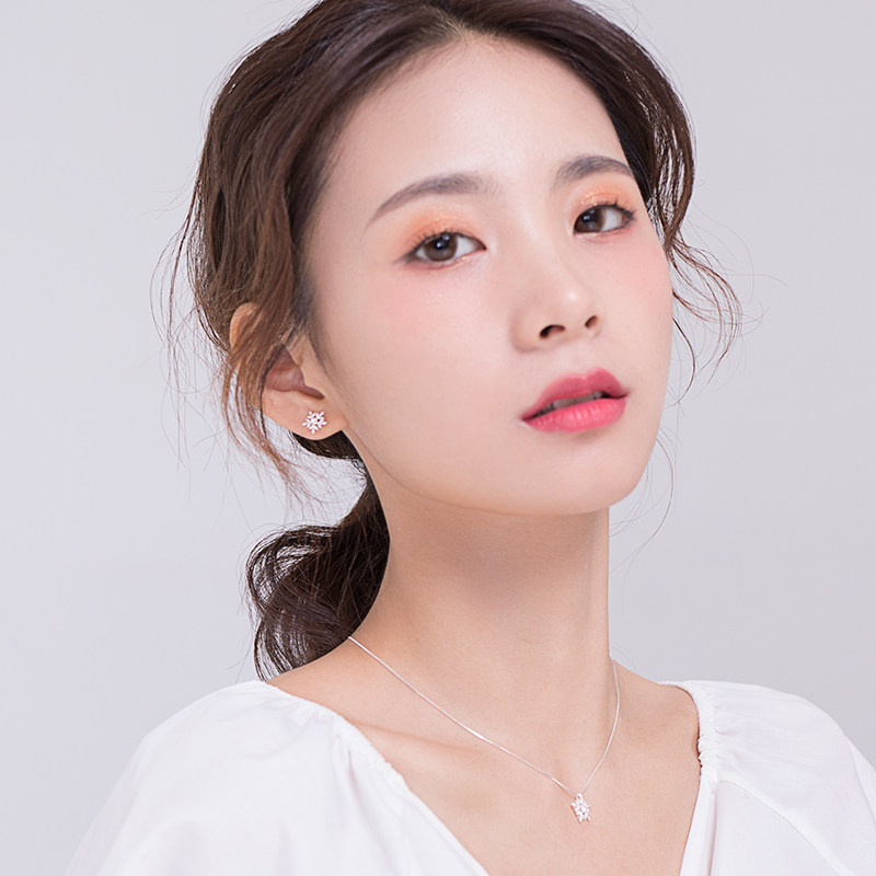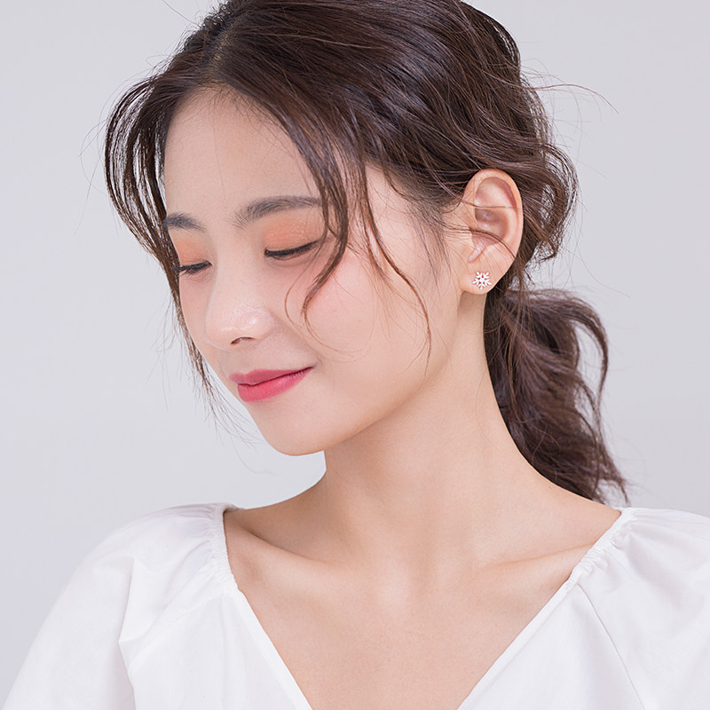 Alley South 925 pure silver Snow floral earbuds Japan-ROK inlaid with sweet and beautiful Personality Earrings Temperament Brief FRESH EARRINGS