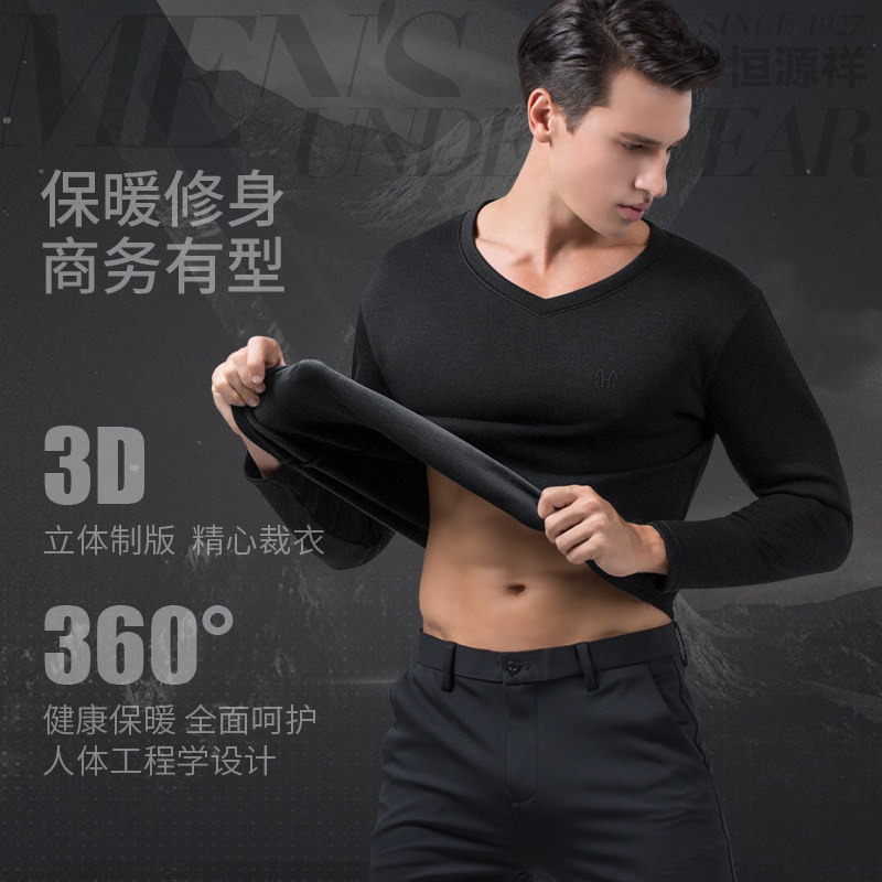 Hengyuanxiang men's thermal underwear top wear a single upper body middle-aged autumn clothes with velvet thickening anti-winter season
