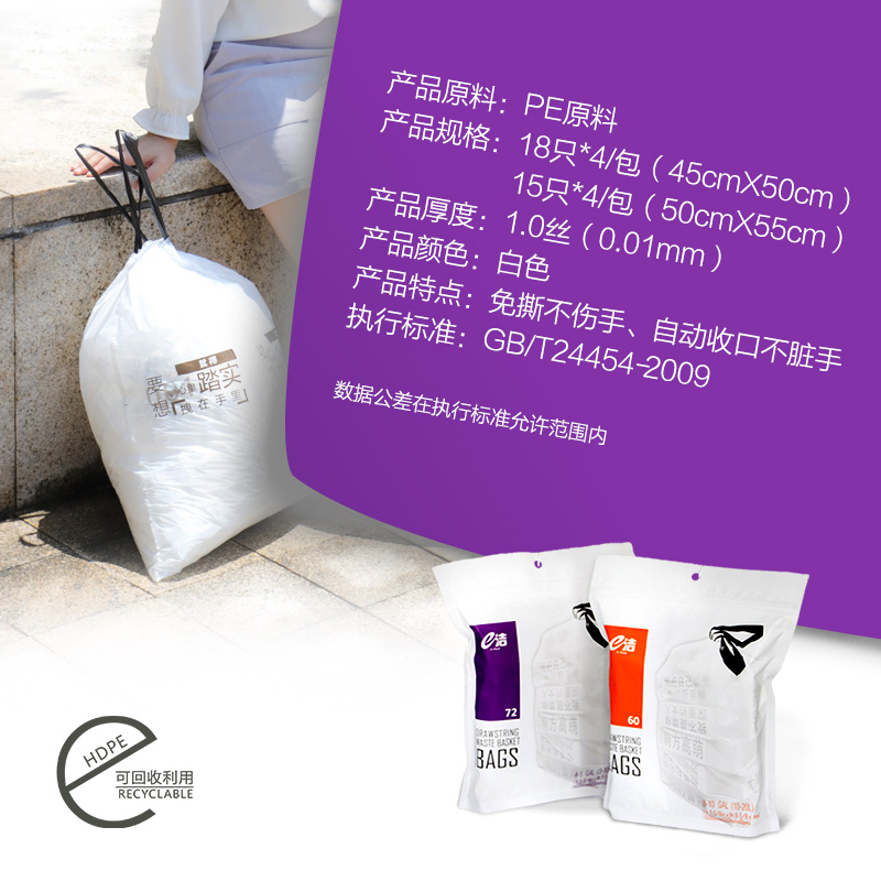 Automatic closing garbage bag thickened household portable creative environmental protection kitchen drawstring dry and wet classification plastic bag