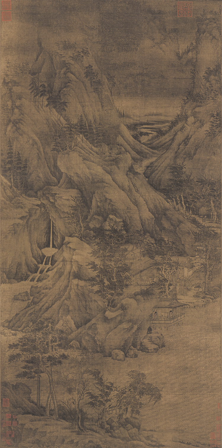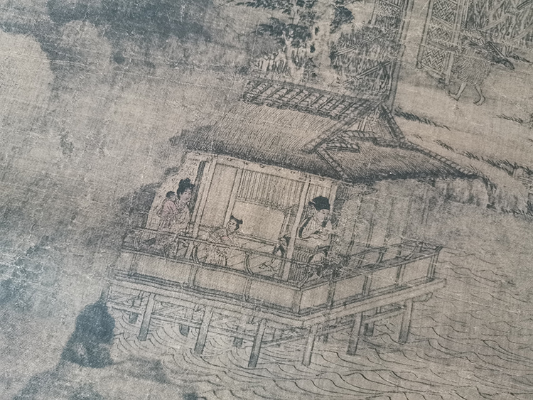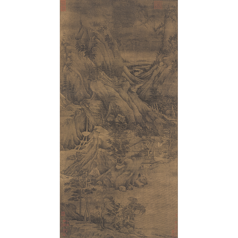 Five Dynasties Dong Yuanxi Shore map Chinese painting Landscape painting Ancient painting replica calligraphy and painting Decorative painting Copy manuscript silk cloth painting