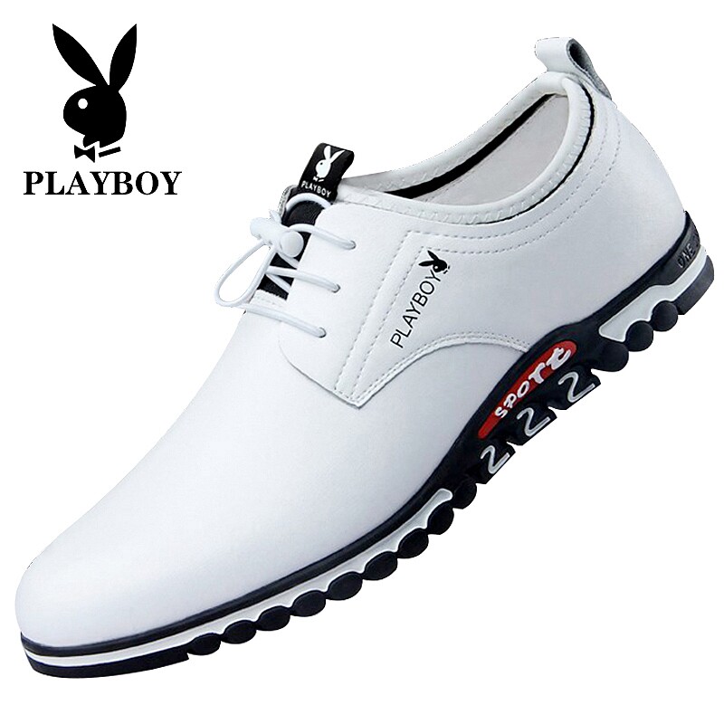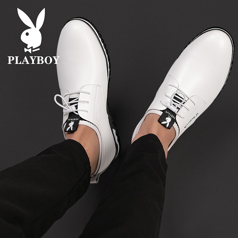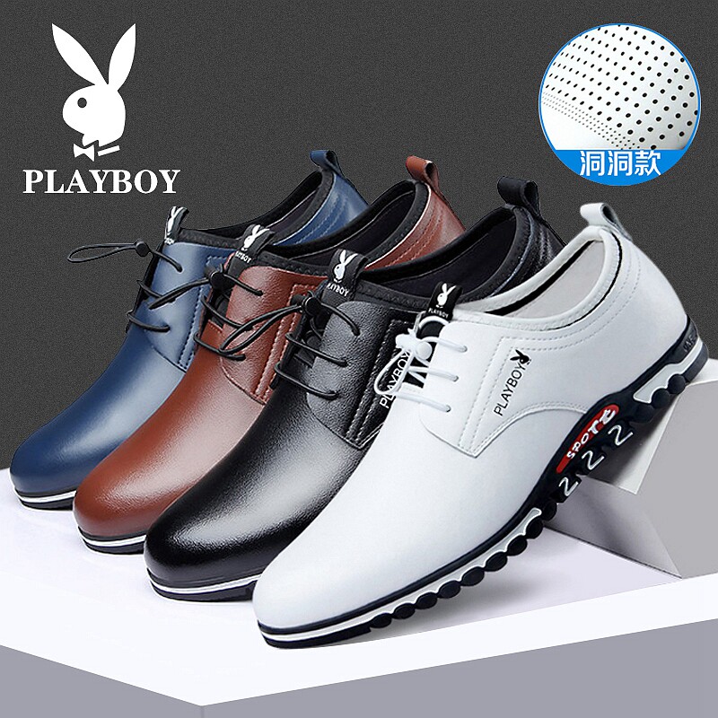 Playboy men's shoes summer 2022 new business leisure men breathable elevated hollow white leather shoes