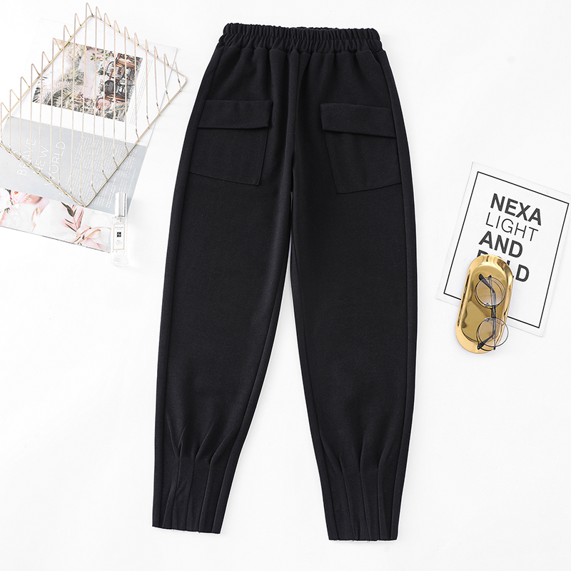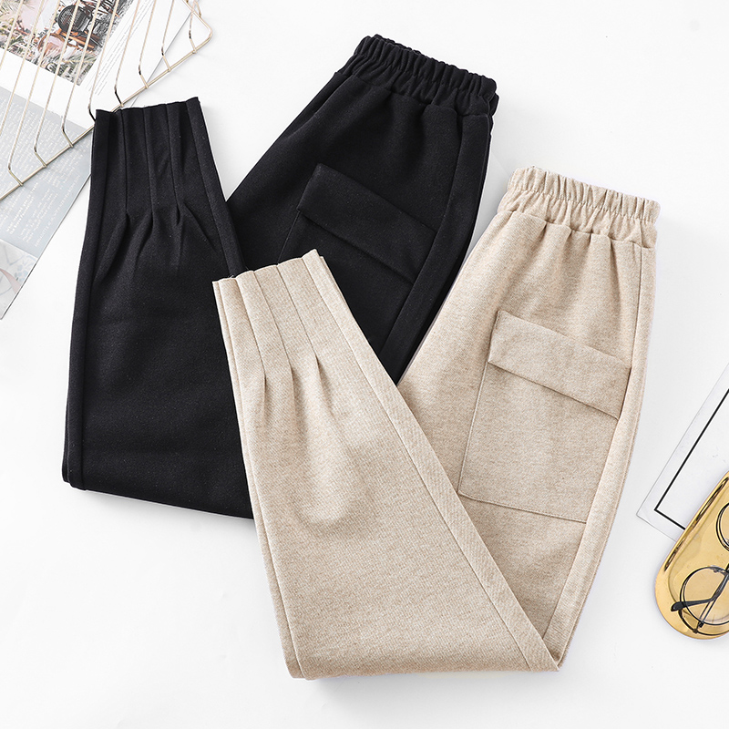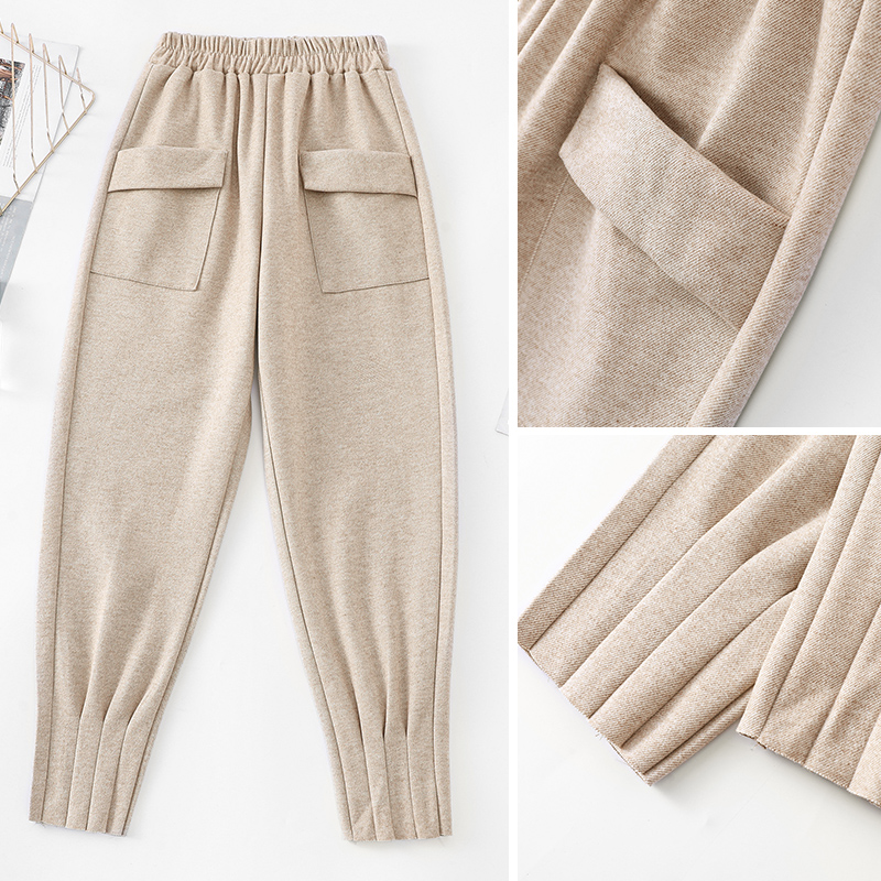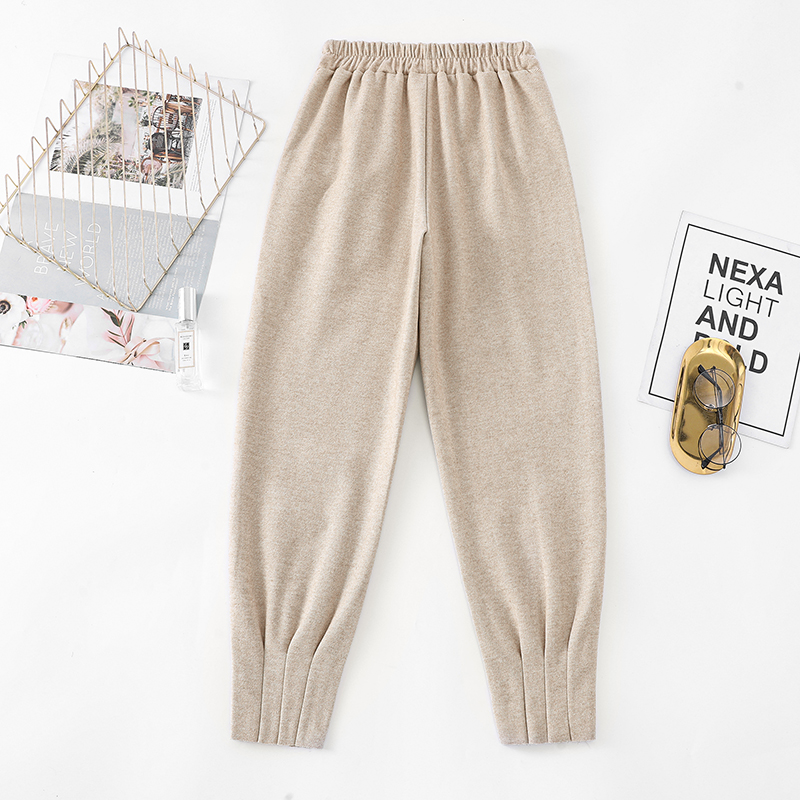 Woolen sports pants women in autumn and winter 2022 new Korean version of high waist tied feet Harlan pants plus velvet lob casual pants