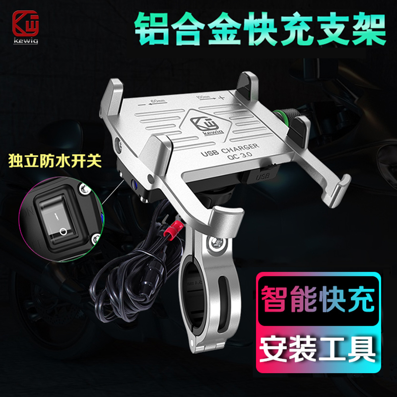 Motorcycle mobile phone charger bracket switch modified usb fast charging waterproof navigation stent electric vehicle aluminum alloy