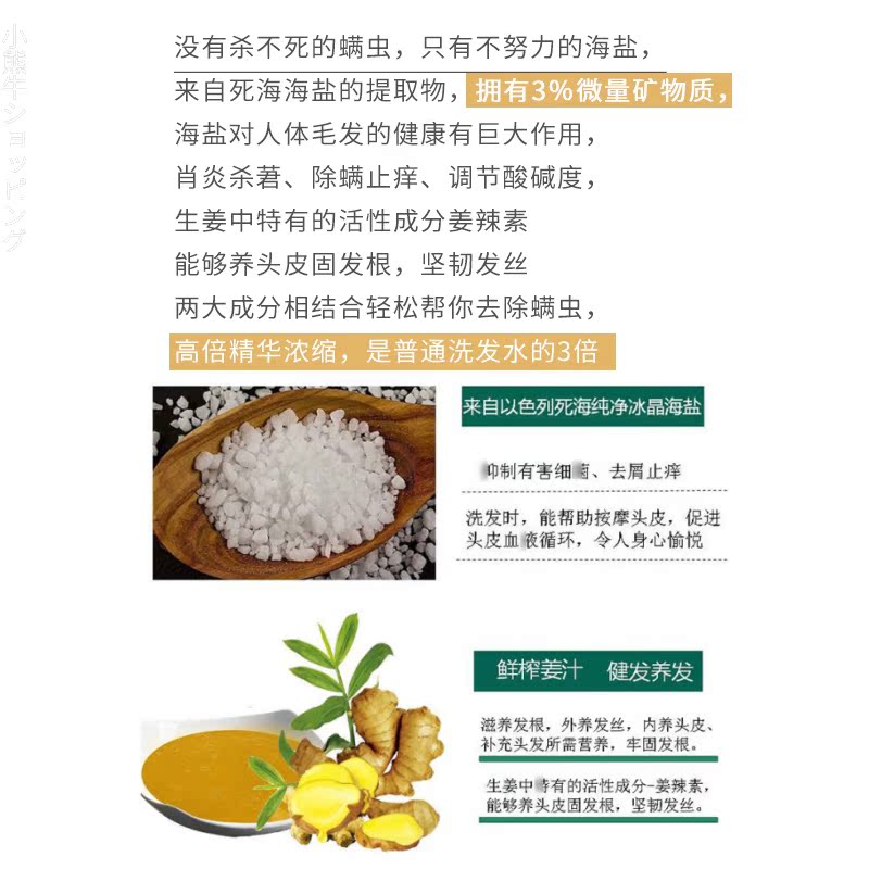 Purify scalp, Mei Ke Nai, ginger salt shampoo, ginger, sea salt, shampoo, oil and itching